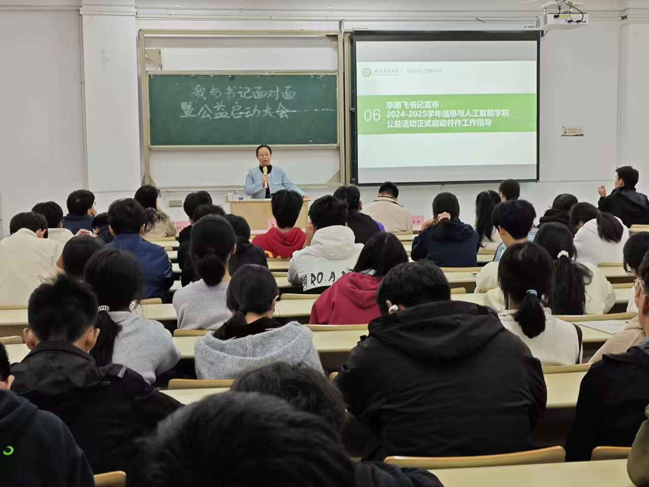 本网讯 10月25日,信息与人工智能学院在学院202教室举行2024-2025学年公益活动启动大会暨“我与书记面对面”活动。学院党委副书记、纪委书记李南飞出席会议,200余名师生代表参加了会议。