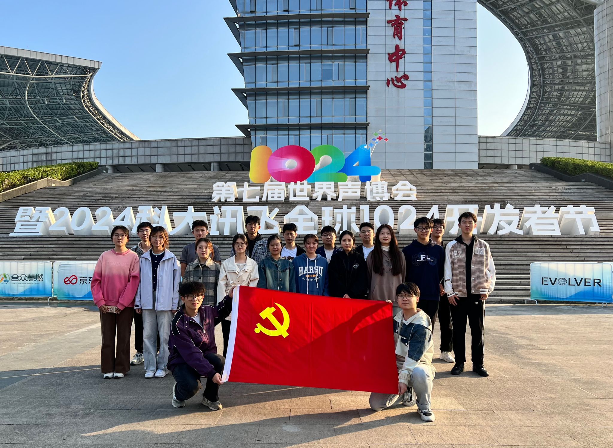 本网讯 10月24日,信息与人工智能学院院组织本科生第四党支部师生党员,参加由安徽省工业和信息化厅、合肥市人民政府主办,科大讯飞股份有限公司等承办的第七届世界声博会暨2024科大讯飞全球1024开发者节。