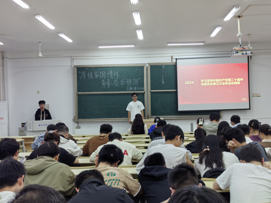 厚植家国情怀,青春告白祖国。9月28日和10月18日,学院开展班长、团支书、学生会骨干培训会,提升学生骨干的政治觉悟、理论素养和工作能力,推动各项工作的顺利开展。各团支部通过PPT讲解、宣讲、观看红色主题电影等形式学习党史、新中国史、改革开放史、社会主义发展史、中华民族发展史以及党的二十届三中全会精神,引导青年学生坚定理想信念,激发广大青年的爱国情怀和创新精神。