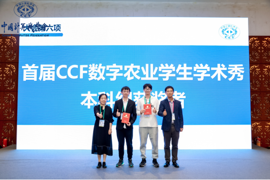 本网讯 11月1日—3日,中国计算机学会CCF第二届数字农业分会暨首届CCF数字农业学生学术秀在广州举行。本次活动由CCF数字农业分会主办,吸引了全国众多涉农高校学子的积极参与。信息与人工智能学院多名学子与中国人民大学、西北农林科技大学、华中农业大学、华南农业大学等高校选手同台竞赛。通过激烈比赛,吴康磊和张传坤同学分别获得本科组二等奖、硕士组三等奖,邓友慧同学通过Poster展示了最新的研究成果。