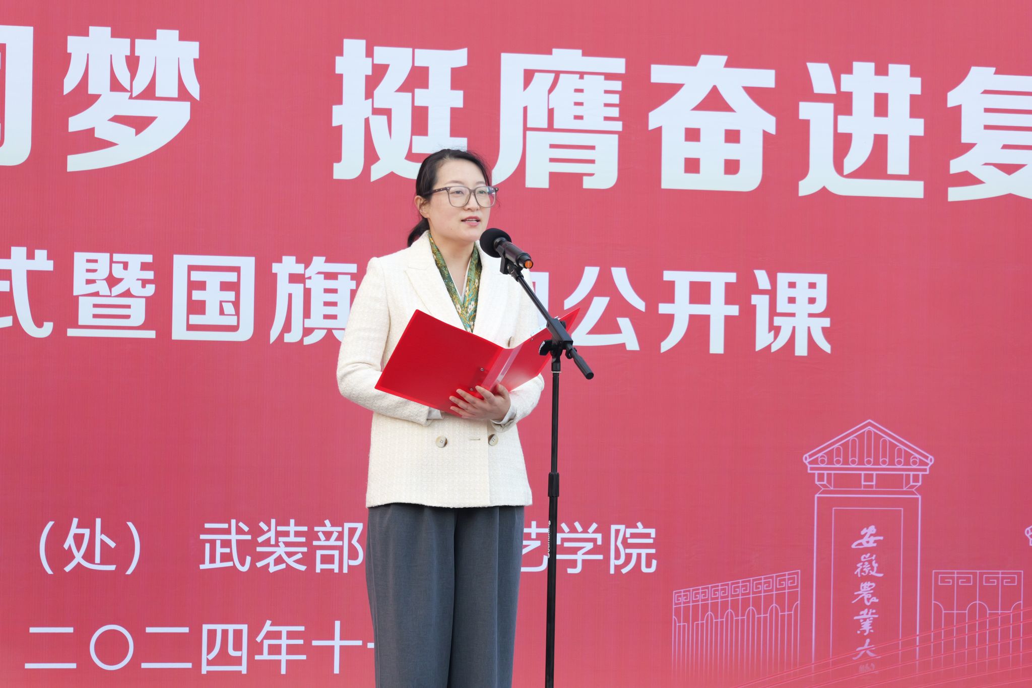 赵冠艳在国旗下开展了一堂“强国建设与中国梦”的主题公开课。她指出,以中国式现代化全面推进强国建设、民族复兴是新时代的中心任务,农科学子应牢记使命,积极投身农业科技创新,以实际行动助力国家发展;希望同学们能够以坚定的信念、扎实的行动,在园艺领域深耕细作,为实现中华民族伟大复兴的中国梦贡献自己的智慧与力量,让青春在服务三农的伟大事业中绽放绚丽之花。