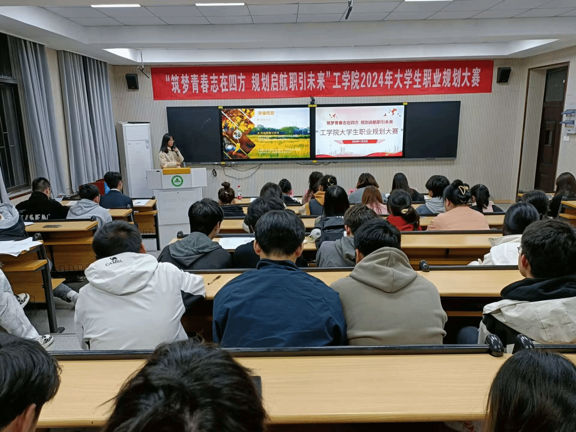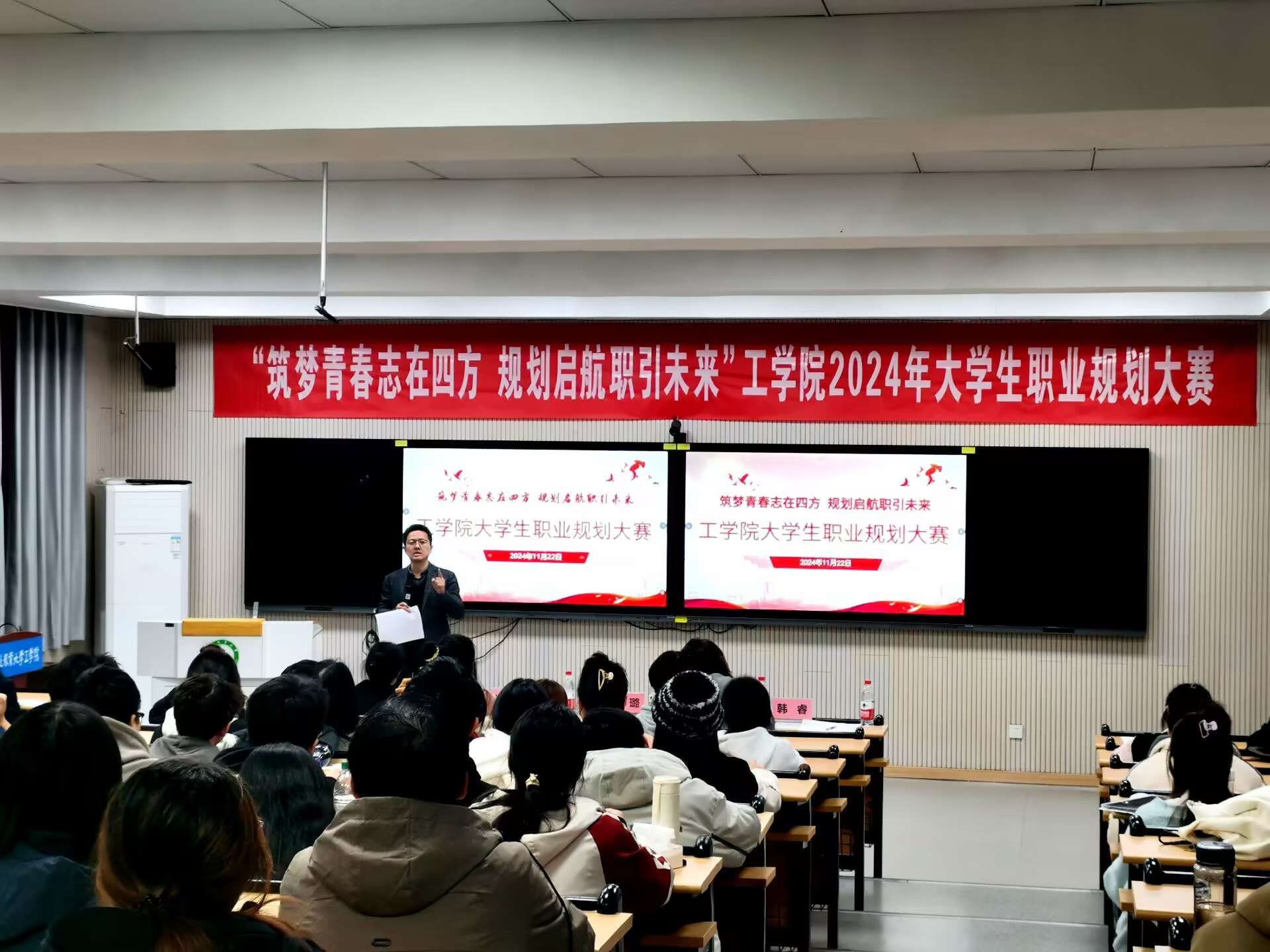 本网讯 为深入贯彻落实党中央、国务院关于高校毕业生就业工作的决策部署,提高生涯规划与就业指导工作水平,达到以赛促学、以赛促教、促进就业的目标,11月22日,工学院在101教室举办“筑梦青春志在四方 规划启航职引未来”2024年大学生职业规划大赛。学院党委副书记张璐参加,专职辅导员郑青、方芳、代梦蝶以及专业课老师谢传流、刘洋洋等应邀担任评委。