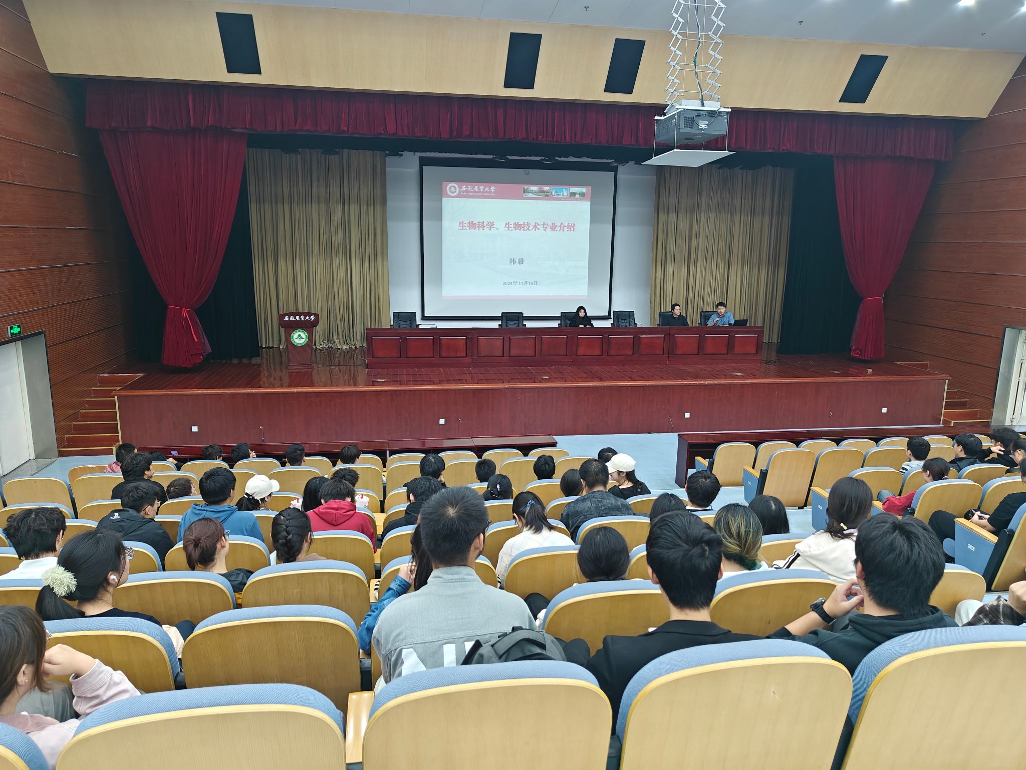 本网讯 11月16日,为响应我校提高新生专业认知的要求,生命科学学院在图书馆第一报告厅组织了新生专业教育活动,生命科学学院系部主任、教授代表、学院2024级新生及专职辅导员参与了此次活动。