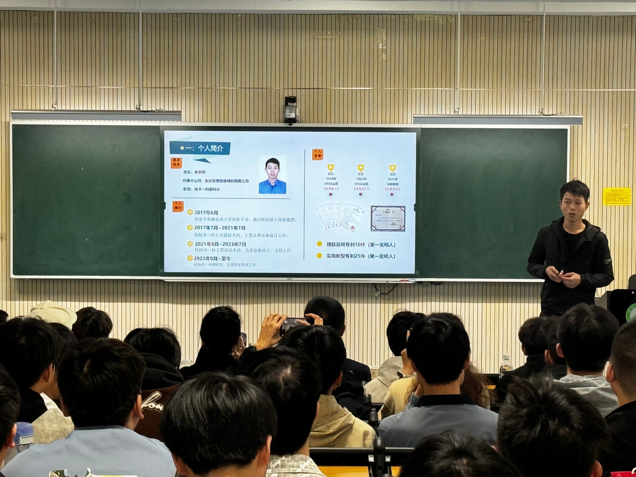 开展“校友开讲啦”活动。10月30日上午,工学院举办“校友开讲啦”活动,活动邀请到安徽环新集团新富动力公司负责人、2015届农机专业校友李平,环新集团ATGE公司技术科长、2017届农机专业校友朱世明,分别结合自身丰富的职场经历,向学弟学妹们传授了职场转型的宝贵经验与专业技能提升的有效策略。