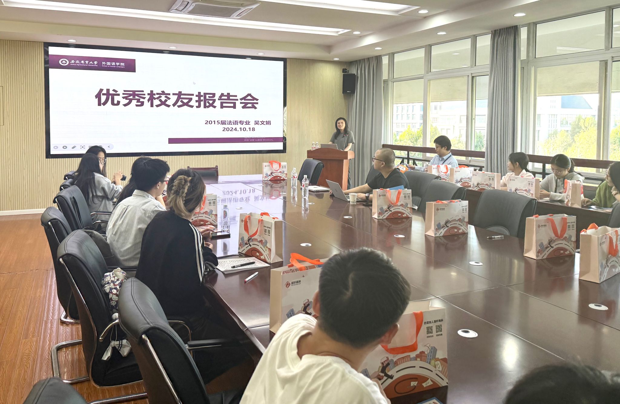 10月18日下午,学院在外语楼506会议室举办优秀校友报告会,合肥国轩高科动力能源有限公司欧非业务板块产品中心高级经理吴文娟(2015届法语专业校友)、2025届部分毕业生等参加了会议。