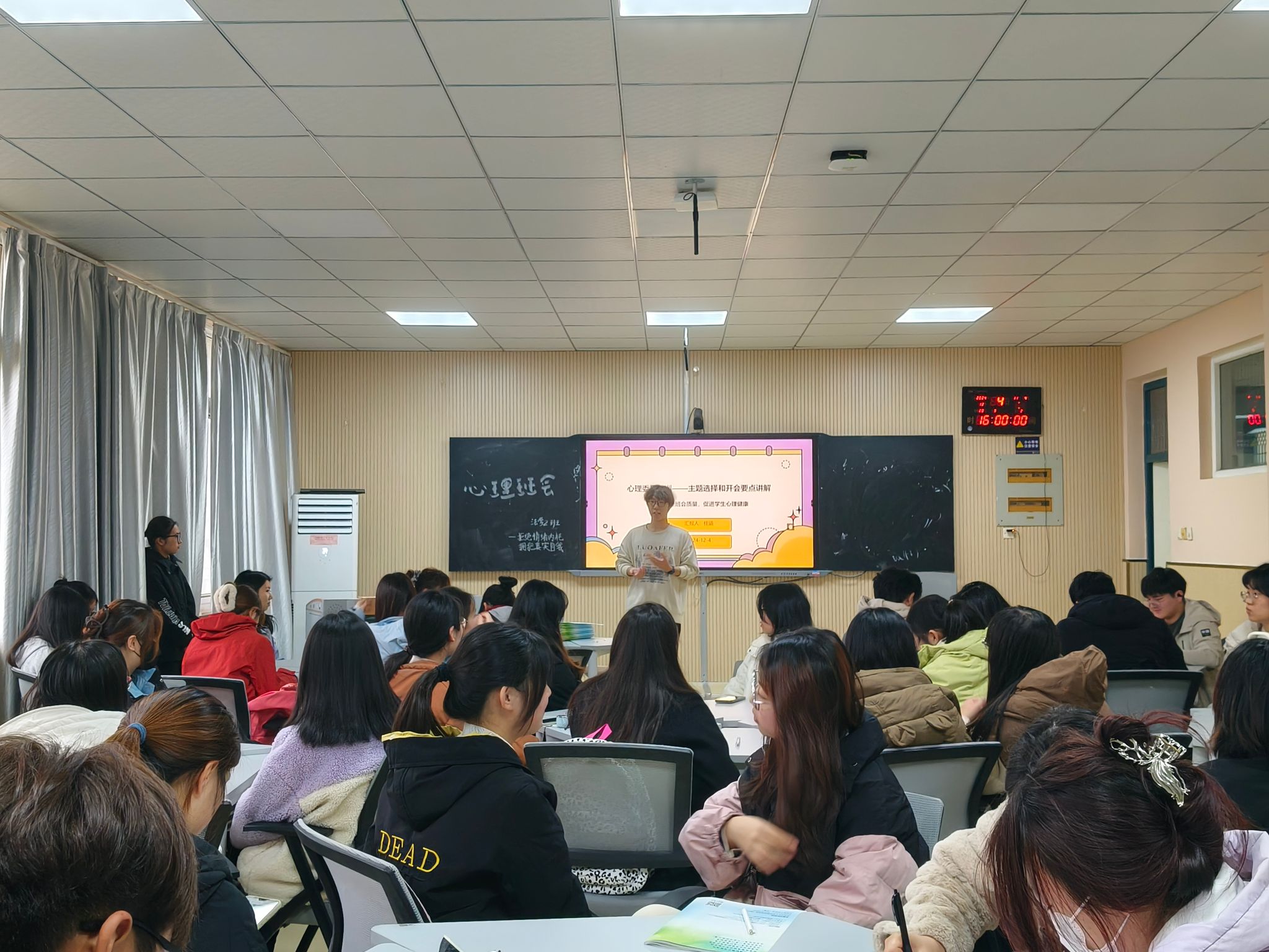 学院心联会部长林晓玲详细讲解《大学生心理健康II》心理手册如何填写,从活动有效性、签到真实性、材料完整性、认定规范性等方面给出了建议,为心理委员高效开展工作提供遵循。