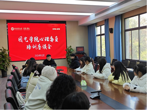 本网讯 为了进一步提高学院心理健康工作水平,提升心理委员的专业素质和工作能力,充分发挥心理委员在心理互助方面的积极作用,12月6日中午,学院在二教326会议室召开了心理委员座谈会。会议由学院心理工作负责老师陆锐主持,各班心理委员参加本次会议。