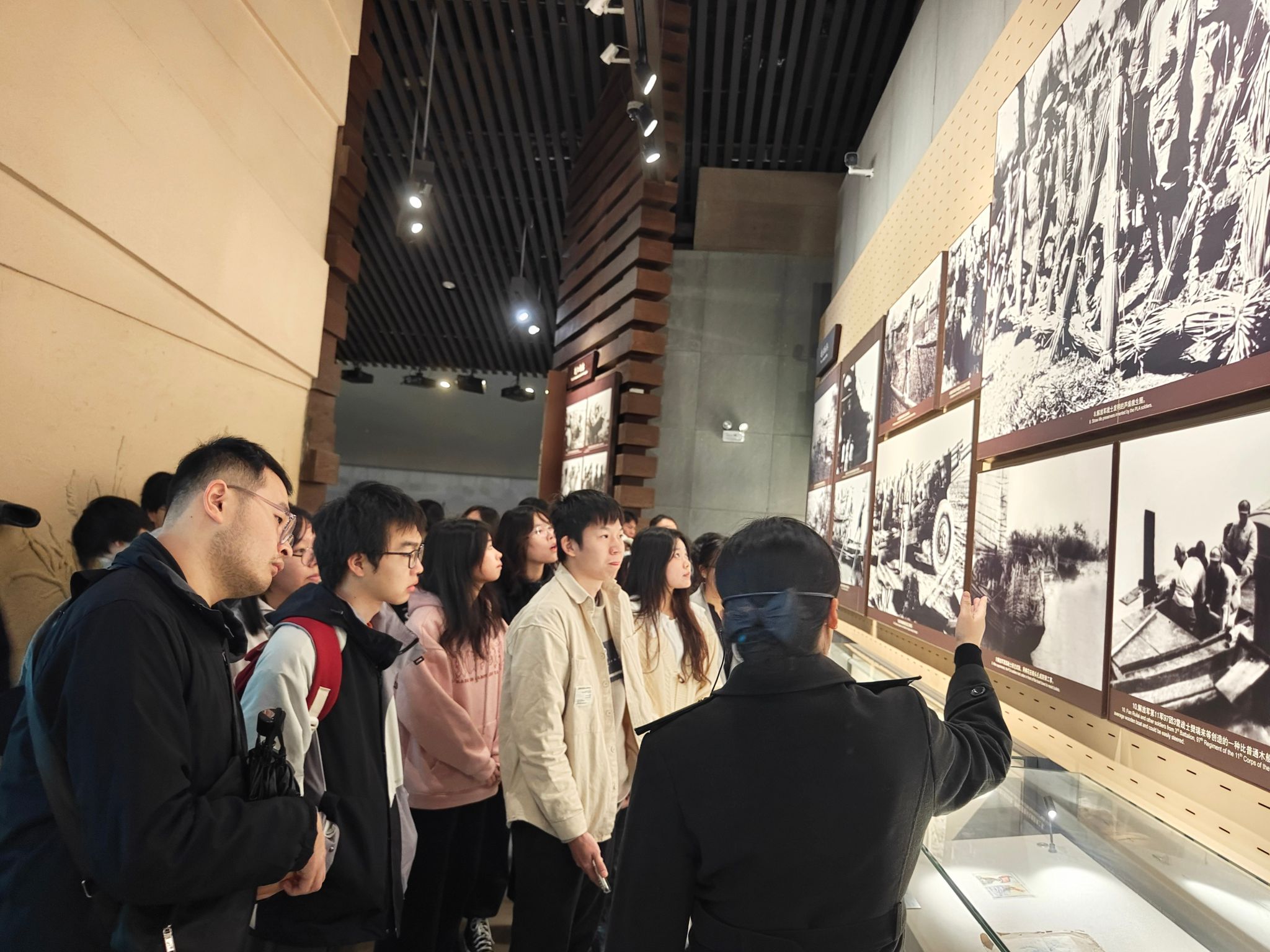 上午九点半,同学们到达渡江战役纪念馆主场馆,映入眼帘的是一只乘风破浪的“船头”和波光粼粼的“长江水”,五位战役总前委群雕矗立在馆前——粟裕、邓小平、刘伯承、陈毅、谭震林,同学们仰视着他们,肃然起敬。渡江战役纪念馆庄严肃穆,气势恢宏。大家怀着崇敬的心情步入馆内,立刻被展厅内丰富的历史资料和逼真的场景还原所吸引。大家依次参观了“战前形势”、“战役准备”、“突破江防”、“战役胜利”、“人民支前”和“英雄业绩”六个展厅,深入了解了渡江战役的历史背景、战斗过程和重大意义。参观过程中,大家跟随讲解员的脚步,不时驻足观看,为革命先辈们的英勇事迹和崇高精神所感动。大家深刻认识到,渡江战役的胜利是无数革命先烈用鲜血和生命换来的,是中国共产党领导下的人民战争的伟大胜利。