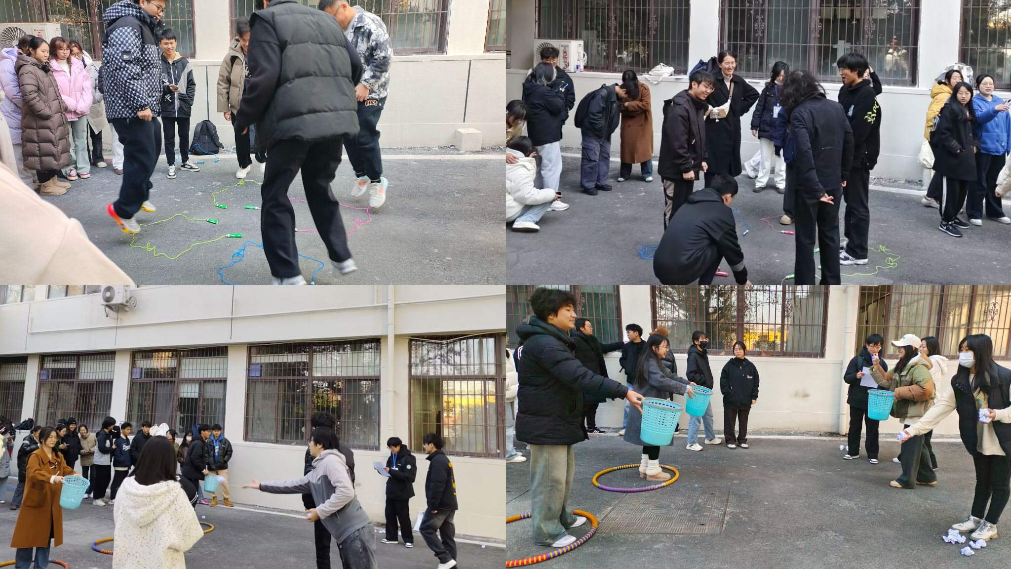 此次团体辅导活动共包含 “圈内圈外”、“躲猫猫”、“数字陷阱”和“默契投掷”四个项目。活动现场,心理委员及宿舍心理信息员6人为一组,分工合作,用实际行动展现了团结协作、携手共进的拼搏精神,以积极的交流和默契的配合完成了每一个项目。