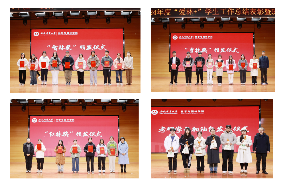 大会对2024年度表现优秀的集体和个人进行了表彰。学院特设“红林奖”“育林奖”“智林奖”“兴林奖”“护林奖”“秀林奖”六类奖项,表彰在德智体美劳各方面全面发展、成绩优异的集体和个人。