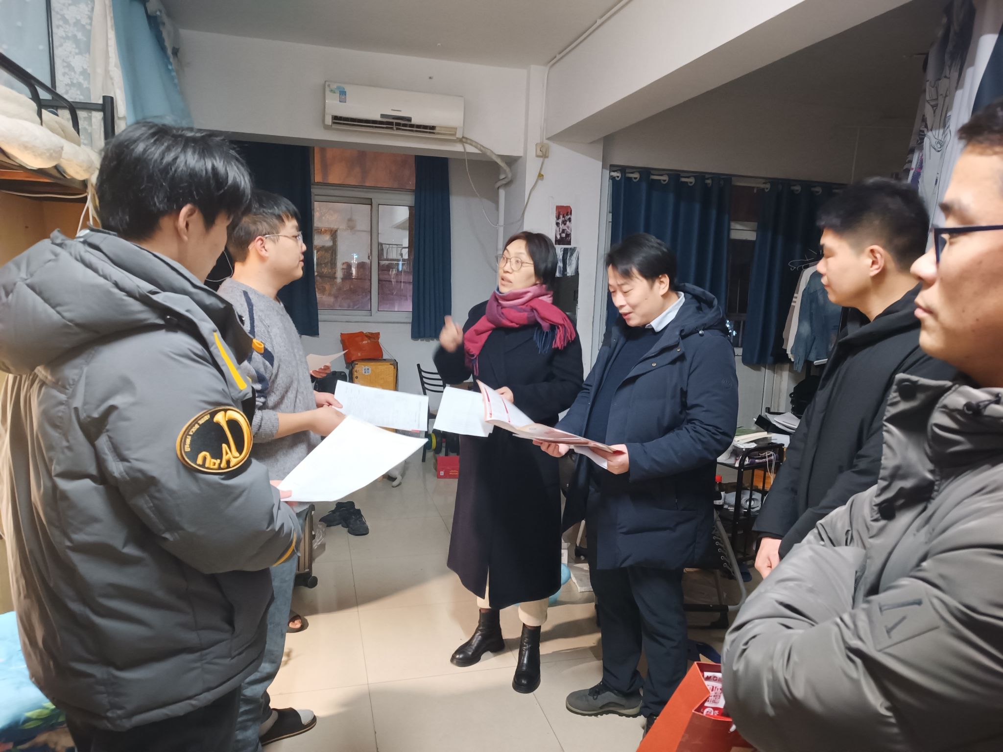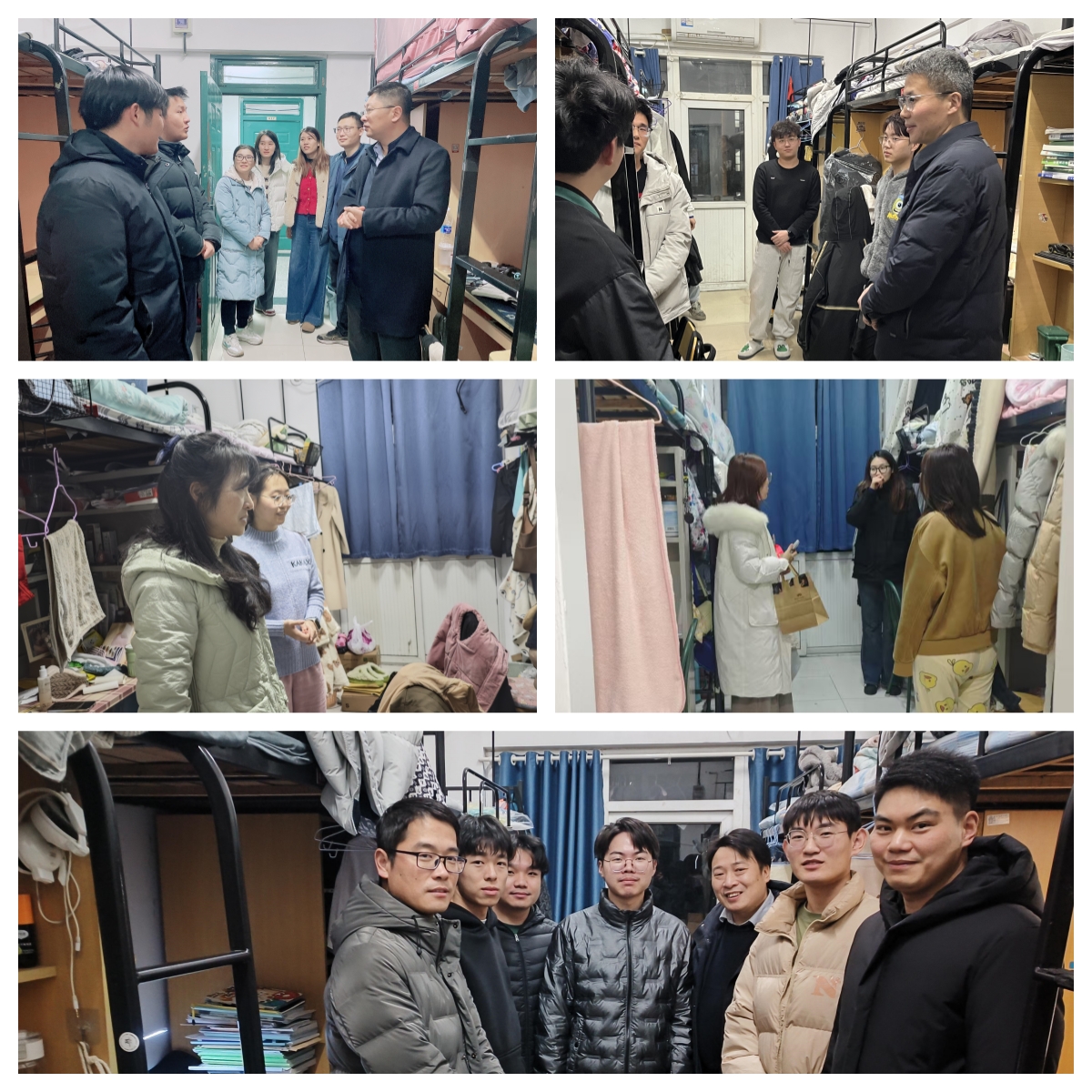 “最近考试复习的怎么样呀”“宿舍有没有遇到什么困难需要学院帮忙解决的呀?”走进非毕业班宿舍,学院领导、老师们深入了解了同学们的学习、生活情况,就安全工作,提醒同学们做好防诈骗、用电、交通、财产、实验室安全防范;着重强调遵守课堂纪律、保持良好考风;还就同学们关心的问题,现场解疑释惑。