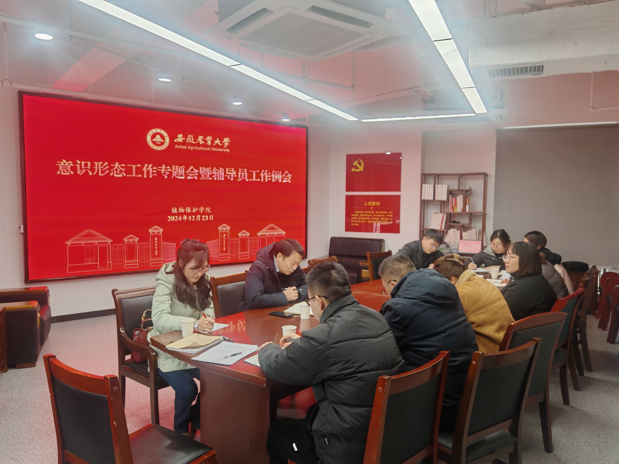 另讯,12月23日下午,学院在研究生公寓B楼1501室召开辅导员例会,全体专兼职辅导员参会,学院党委副书记汪小强主持会议。