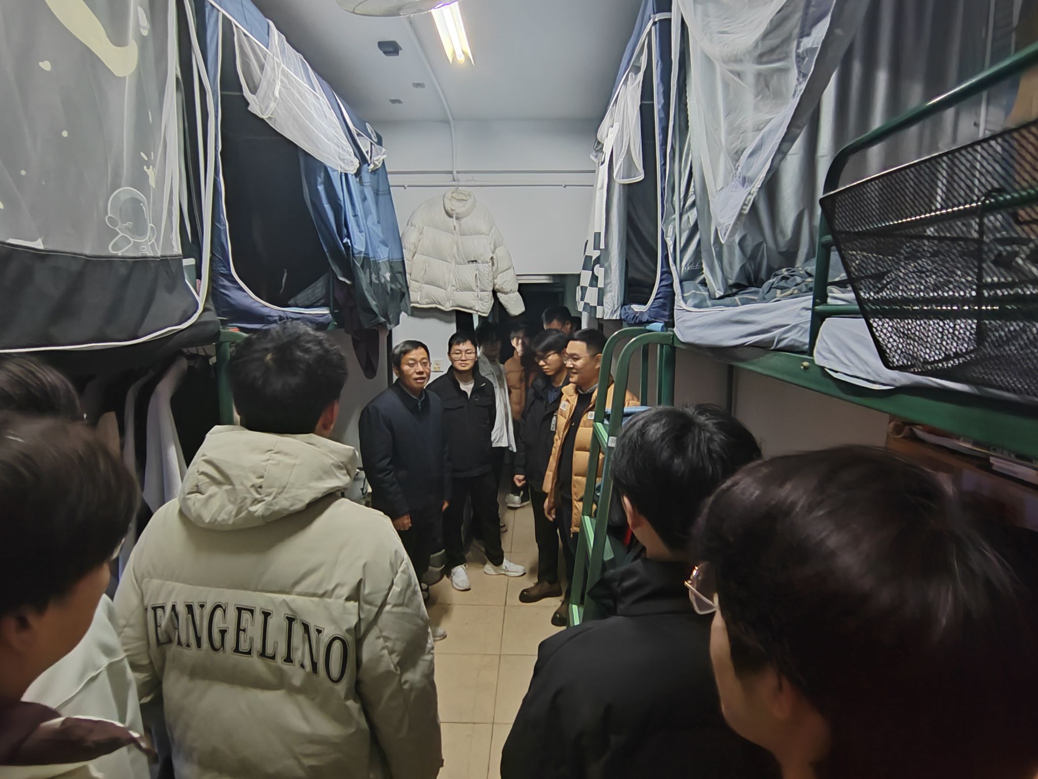 本网讯 1月3日晚,植物保护学院组织全体院领导和专兼职辅导员、班主任深入本科生和研究生各年级宿舍,围绕安全工作、就业征兵与三风建设、寝室卫生检查、教育教学审核评估、学生诚信考试等方面开展了“1+2+N”为主题的“植保夜话”。