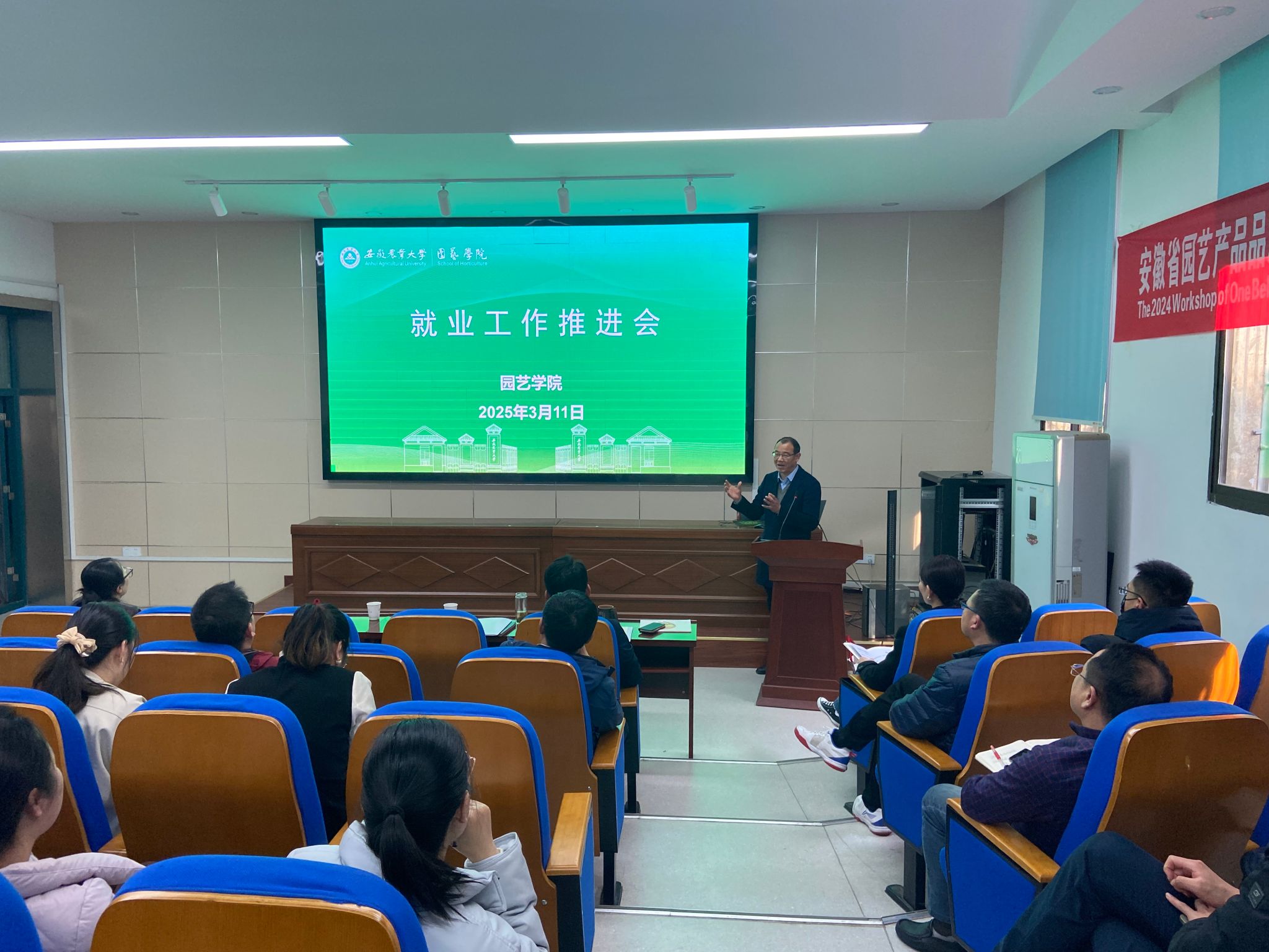 本网讯 为全面贯彻落实国家关于高校毕业生就业创业工作的决策部署,推使学生早就业、稳就业、就好业,3月11日,园艺学院在二教245召开2025届毕业生就业工作推进会。学院党委书记赵冠艳等班子成员及全体教职工参加了会议,会议由学院党委副书记、纪委书记叶辉主持。