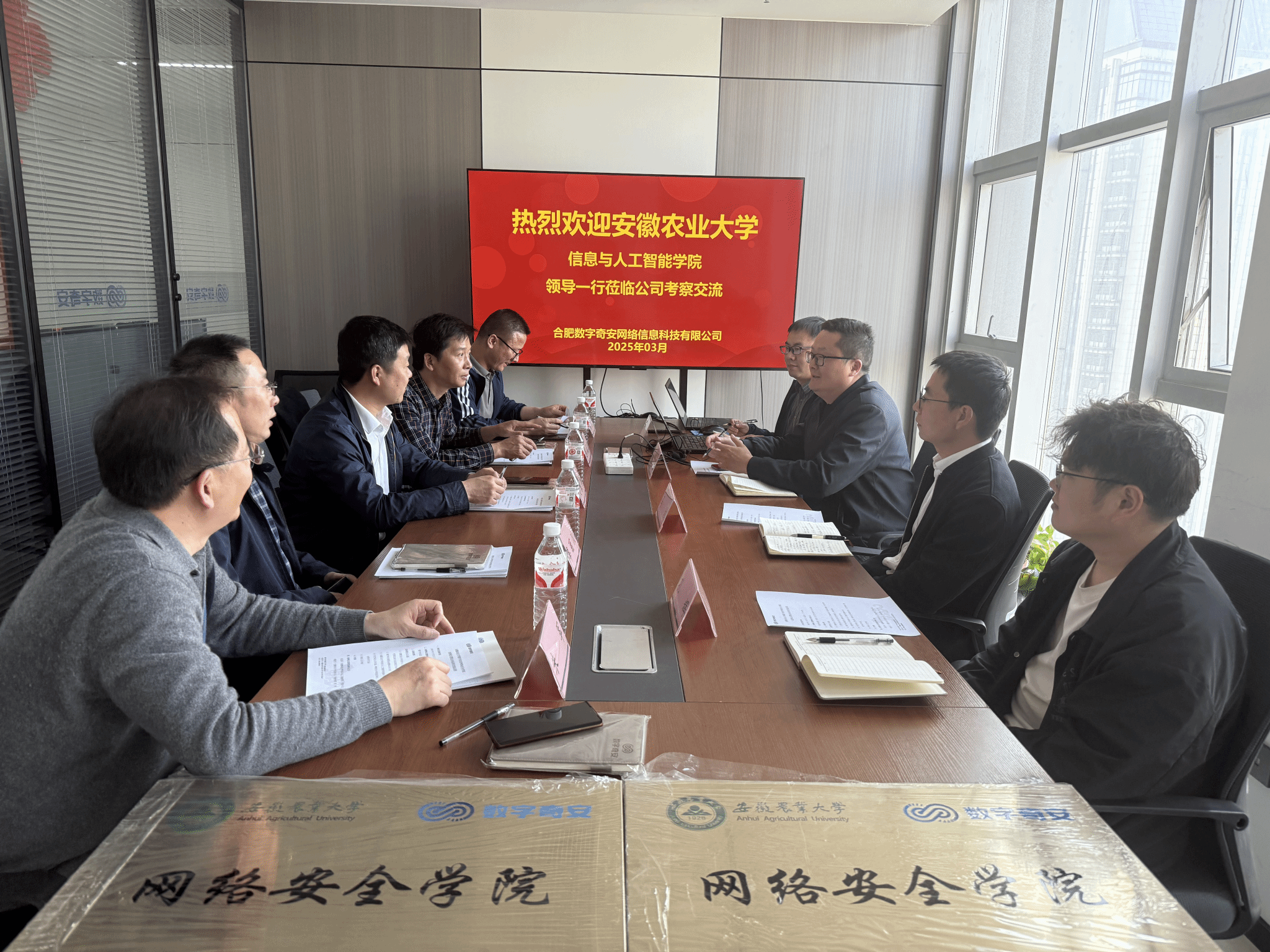 本网讯 3月25日,信息与人工智能学院与数字奇安集团合肥公司共建的“网络安全学院”挂牌仪式在天贸大厦19F会议室隆重举行。学院党政领导班子成员及部分教师出席了挂牌仪式。