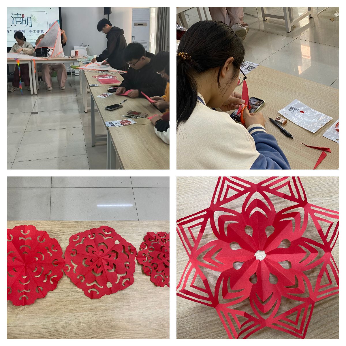 4月3日,学院在“一站式”学生社区北区组织开展“柳丝系春 纸鸢寄情”——“非遗”里的清明节手工制作活动。活动现场,同学们以清明节传统文化为核心,融合非物质文化遗产“折剪镂空”、“阴阳刻法”等非遗技艺制作风筝和剪纸,借助指尖艺术传递对先烈的敬仰之情,通过中华优秀传统文化和非物质文化遗产技艺相结合的形式,带领学生们更好体验传统习俗,传承中华优秀传统文化。
