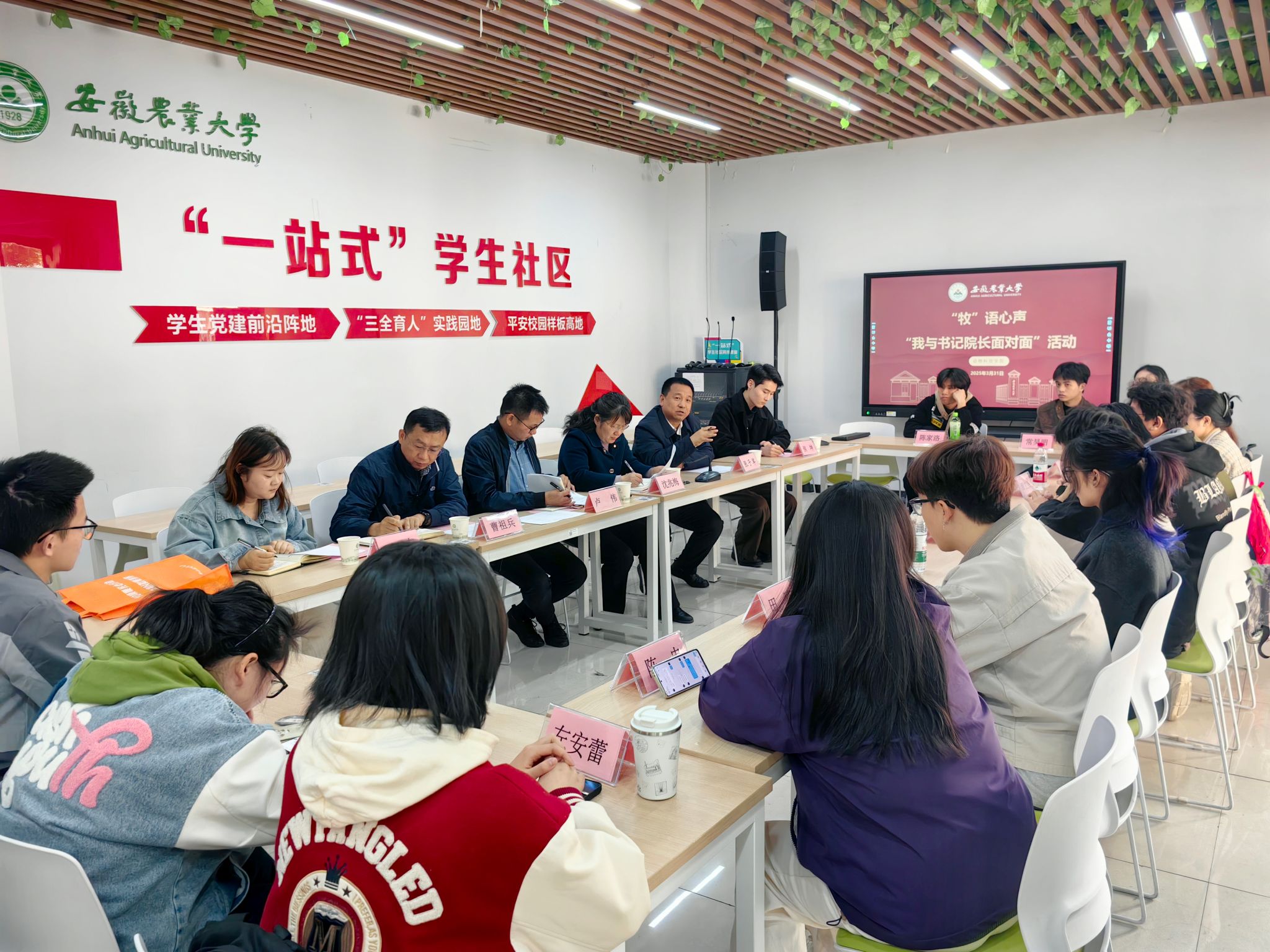3月31日,学院在“一站式”学生社区北区开展“牧”语心声——“我与学院书记院长面对面”活动。学院党委书记沈兆梅、院长张子军、副院长曹祖兵、党委副书记卢伟、团学负责老师和各年级学生代表参加了本次活动。参会师生围绕学习生活、职业规划、校园生活服务、学院发展等话题展开深入交流,倾听学生心声,回应关切诉求,共谋发展良策。
