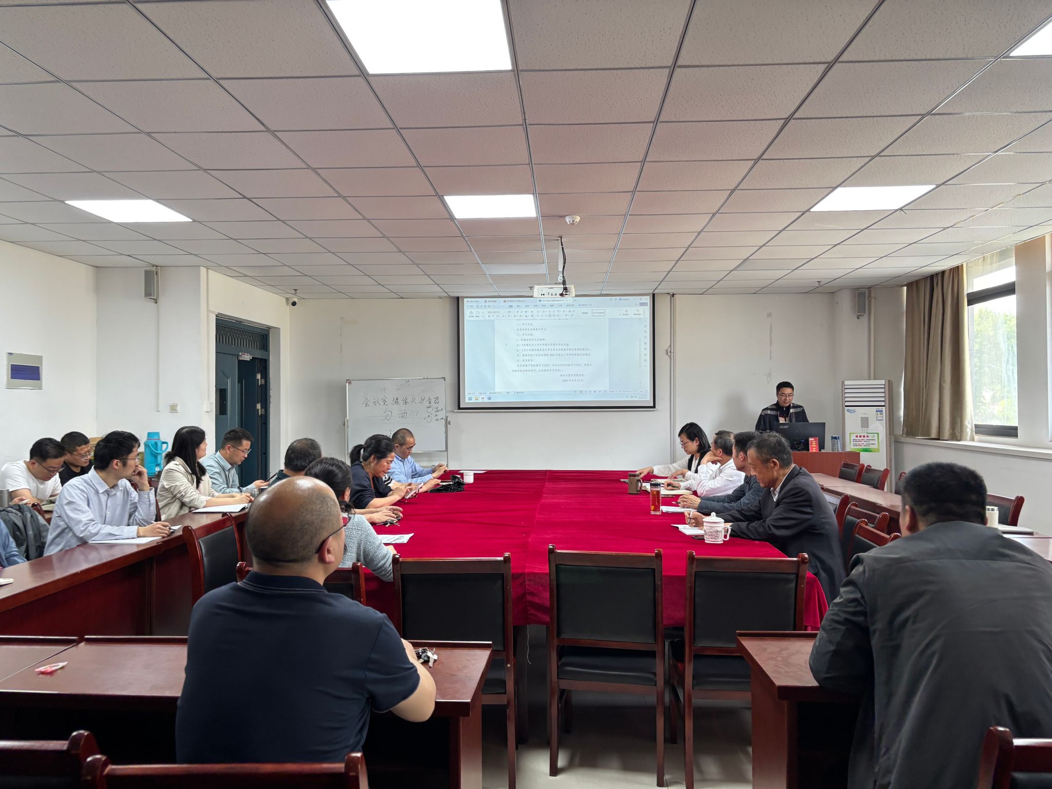 院领导向系部教师通报了学院2025年硕士研究生招生情况,繁昌创新港平台建设以及学院本学期相关工作推进情况,并就推进2025届毕业生毕业和就业工作、进一步规范课堂教学及实践教学、支持学生创新创业竞赛、加强实验室安全管理等重点工作进行调度。