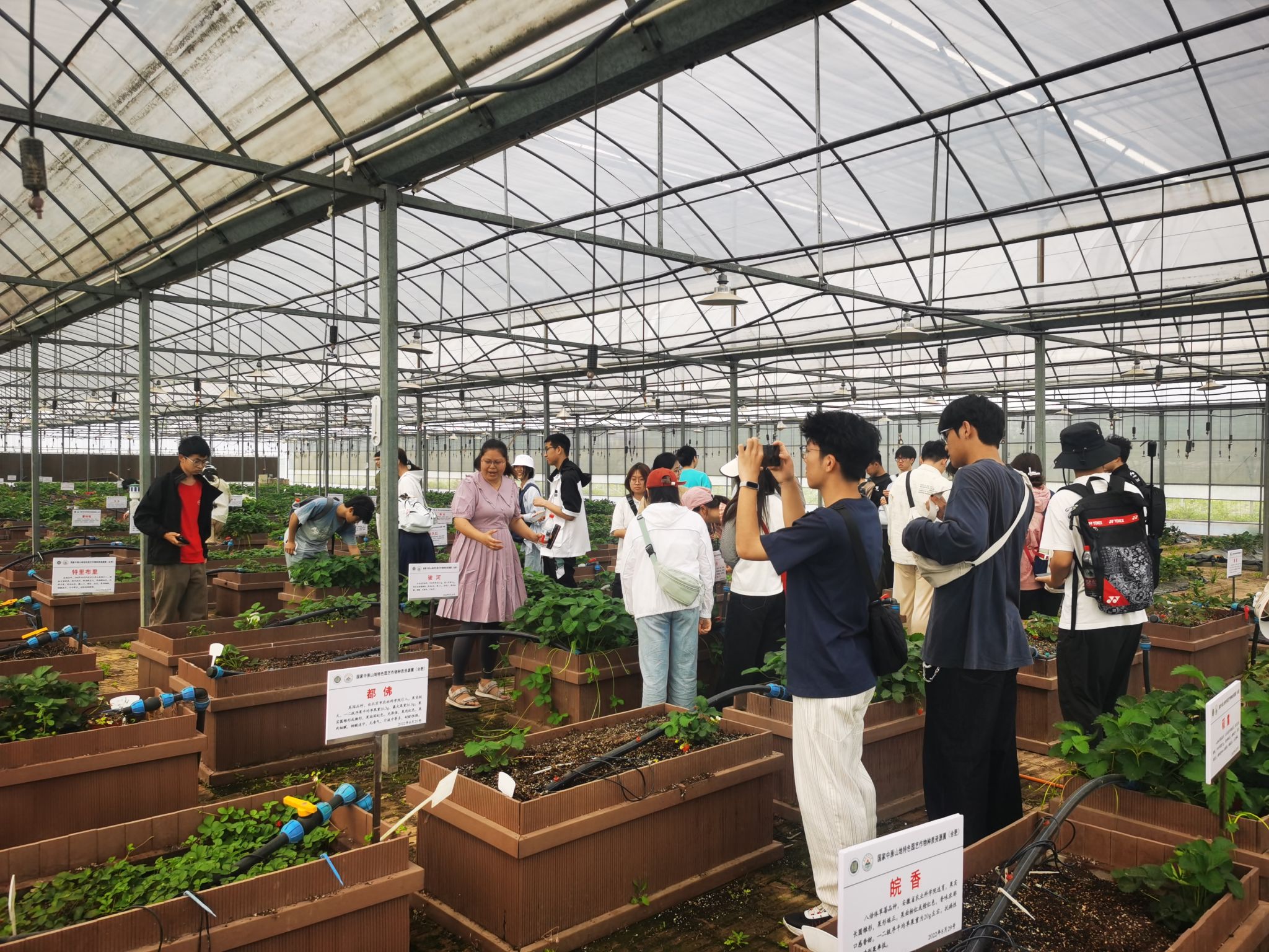在农业农村部国家中原山地特色园艺作物种质资源圃,孙培培老师重点介绍了针对草莓生长特性所采取建设的智能雾喷、水肥一体化、智慧生产决策等一系列现代化农业设施装备,先进的草莓种植控制系统以及精准农业技术的应用,让学生们对园艺专业的先进设施和前沿领域有了更为直观的认识。授课期间,同学们在草莓资源圃亲手采摘、品尝不同的草莓新品种,草莓果实或甜或酸、或大或小,一枚枚果实都承载着农业科技注入与智慧融合。