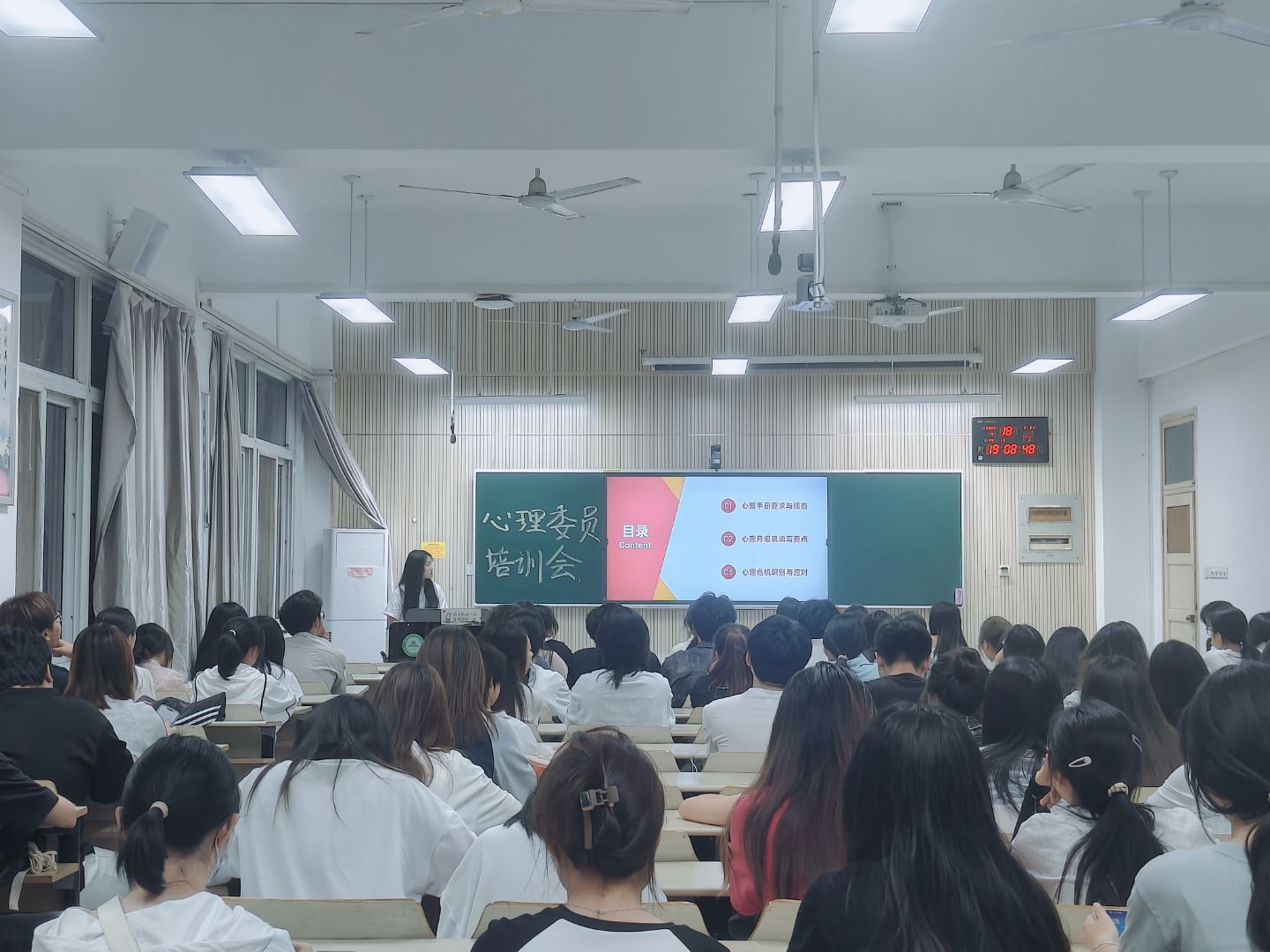 本网讯 为进一步明确心理委员的职责,普及心理健康知识,提升心理委员的专业素养与工作能力,4月18日,人文社会科学学院在人文楼101开展“守护心灵 共筑成长”心理委员培训会,各班级心理委员、联络员参加会议,会议由学院心理联络员姚吴仪主持。