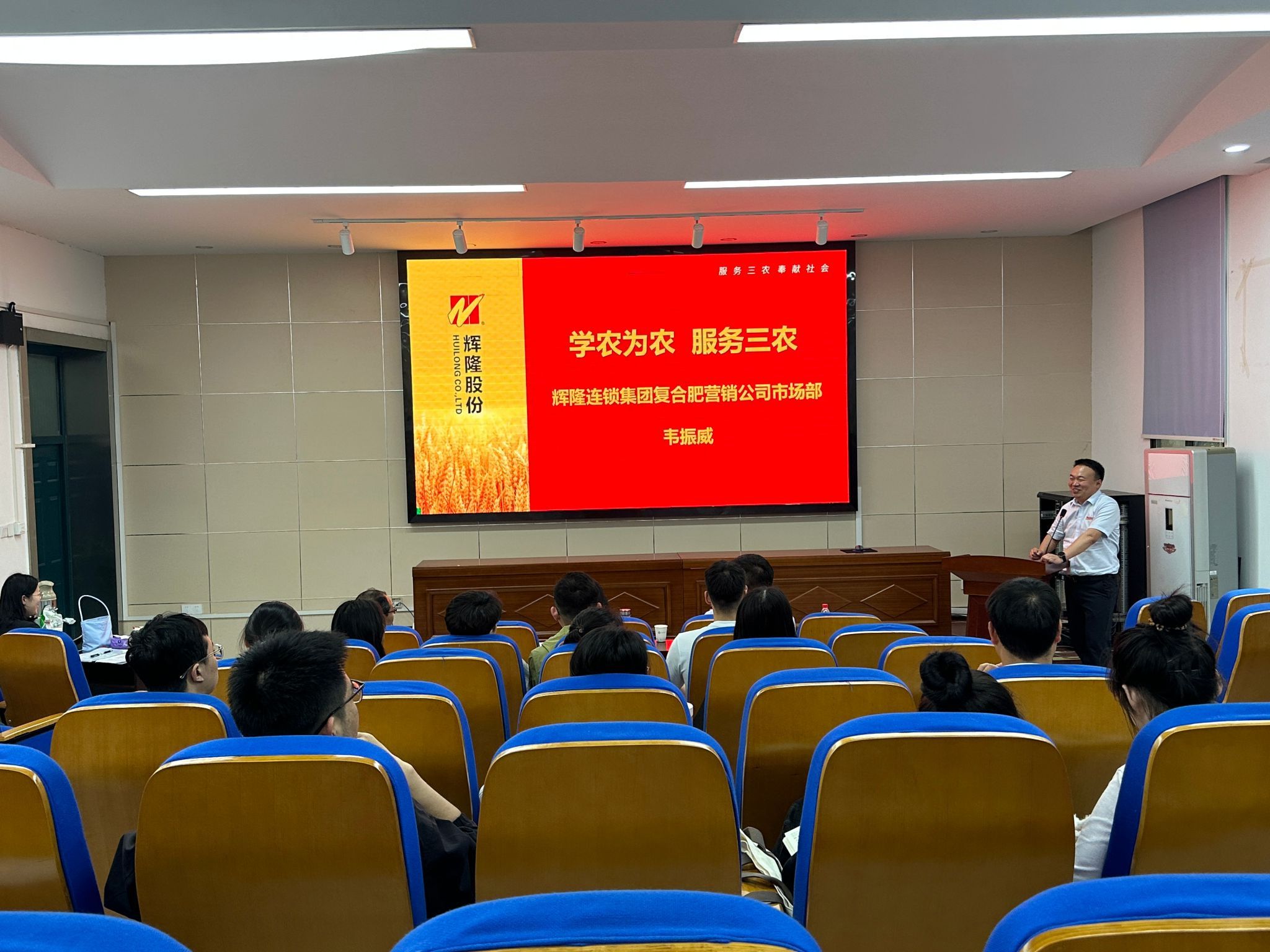 本网讯 为深化校企合作,拓宽毕业生就业渠道,4月22日,园艺学院邀请辉隆集团在二教245开展招聘宣讲会,同时邀请2000届园艺专业校友、企业副总经理于芳、2014级校友、市场部总监韦振威分别做了个人成长和工作经验分享。