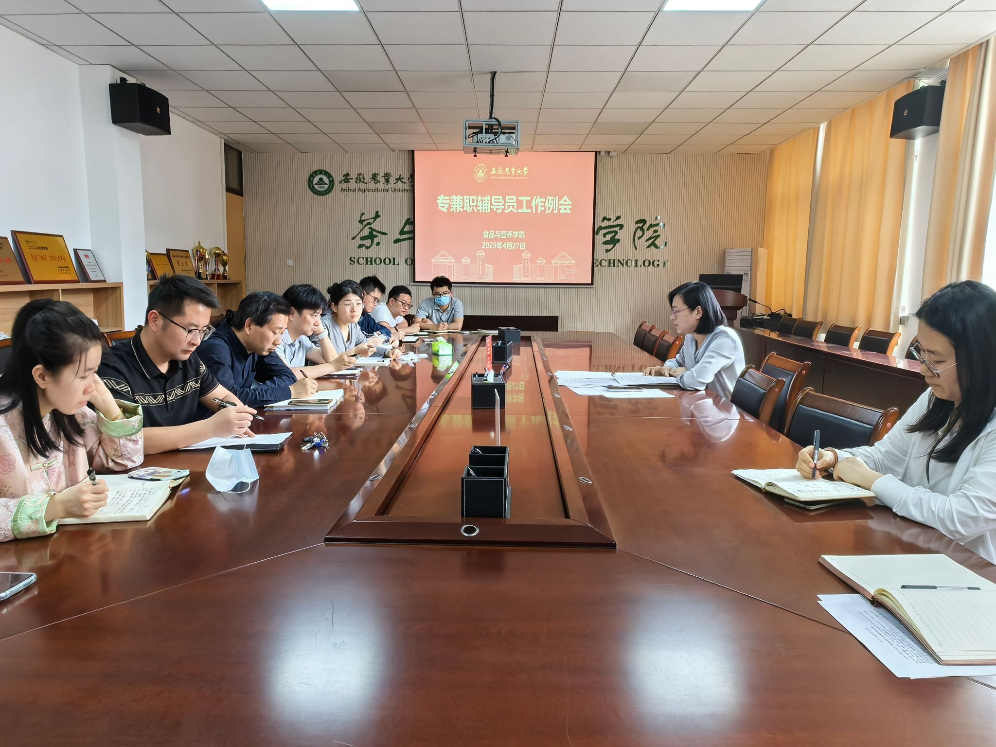 本网讯 4月27日下午,食品与营养学院在茶业楼219会议室召开专兼职辅导员工作例会,全体专兼职辅导员参加会议,会议由学院党委副书记、纪委书记夏晓昀主持。