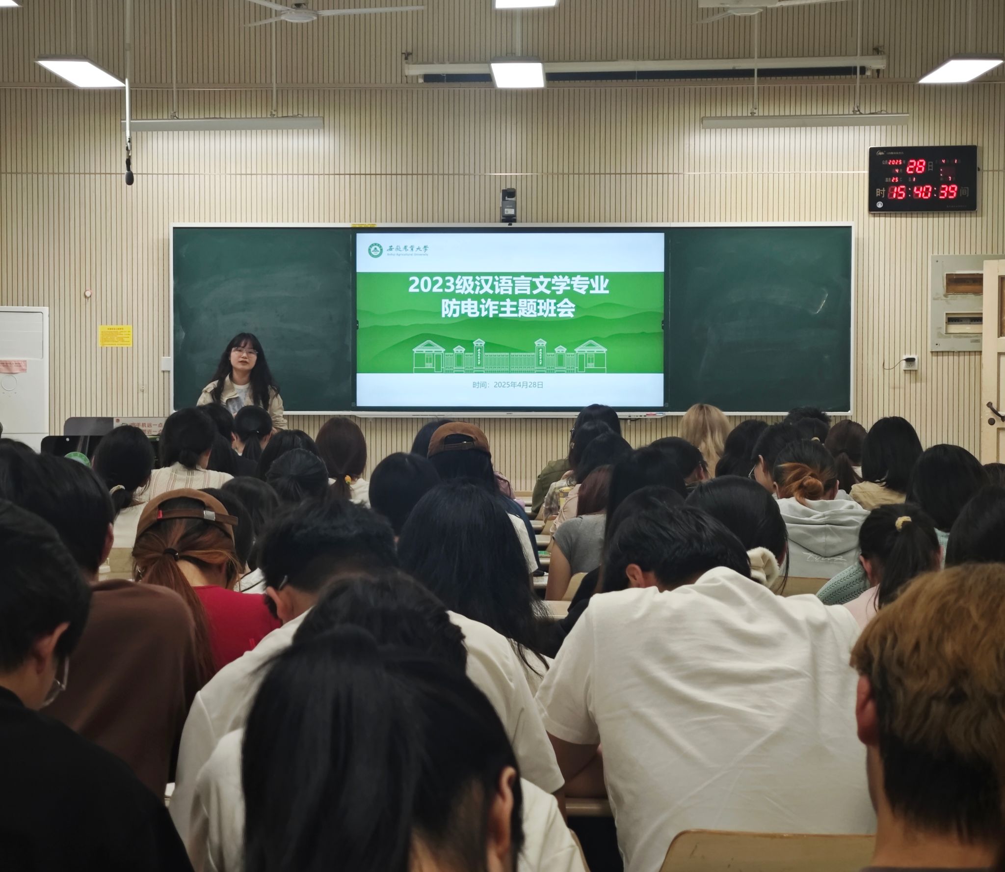 4月24日-30日,学院组织52个班级开展反诈主题班会,构建“辅导员主导+学生骨干示范”的双轨宣讲机制,通过“情景剧演绎+案例复盘”的形式,重点讲解刷单返利、网络贷款、虚拟投资理财等诈骗类型,让学生们对电信网络诈骗有了直观且系统的认识,识骗、防骗能力显著提升。