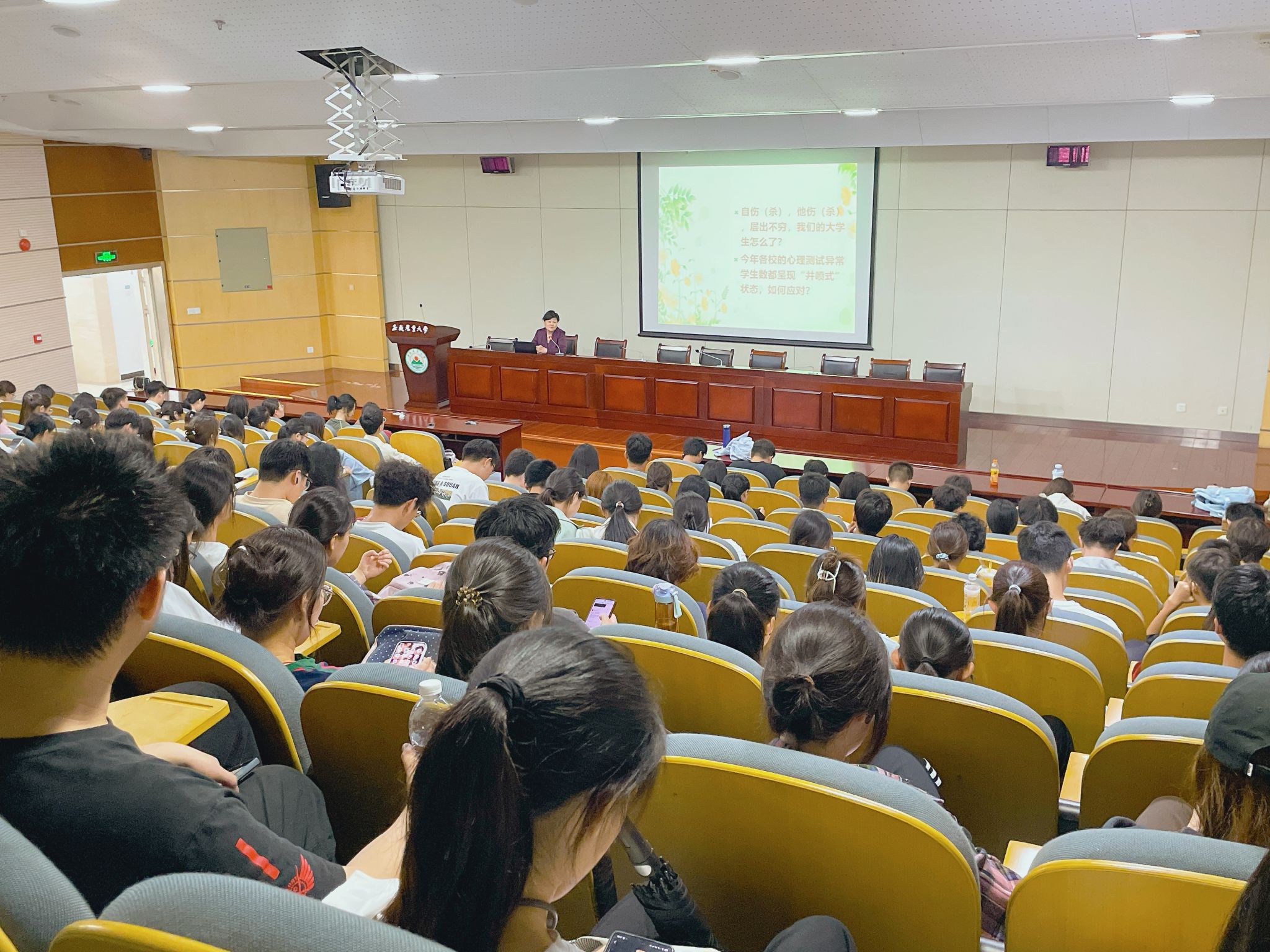 本网讯 为切实守护学生心理健康,强化心理危机防范与干预能力,维护校园和谐稳定,5月23日晚,植物保护学院在图书馆第二报告厅邀请安徽警官职业学院王世民教授作“大学生心理危机干预”专题培训讲座。学院全体辅导员班主任、研究生导师、班级心理委员、寝室心理信息员、本科生及研究生骨干、学生代表等参加培训,会议由学院党委书记刘柳主持。