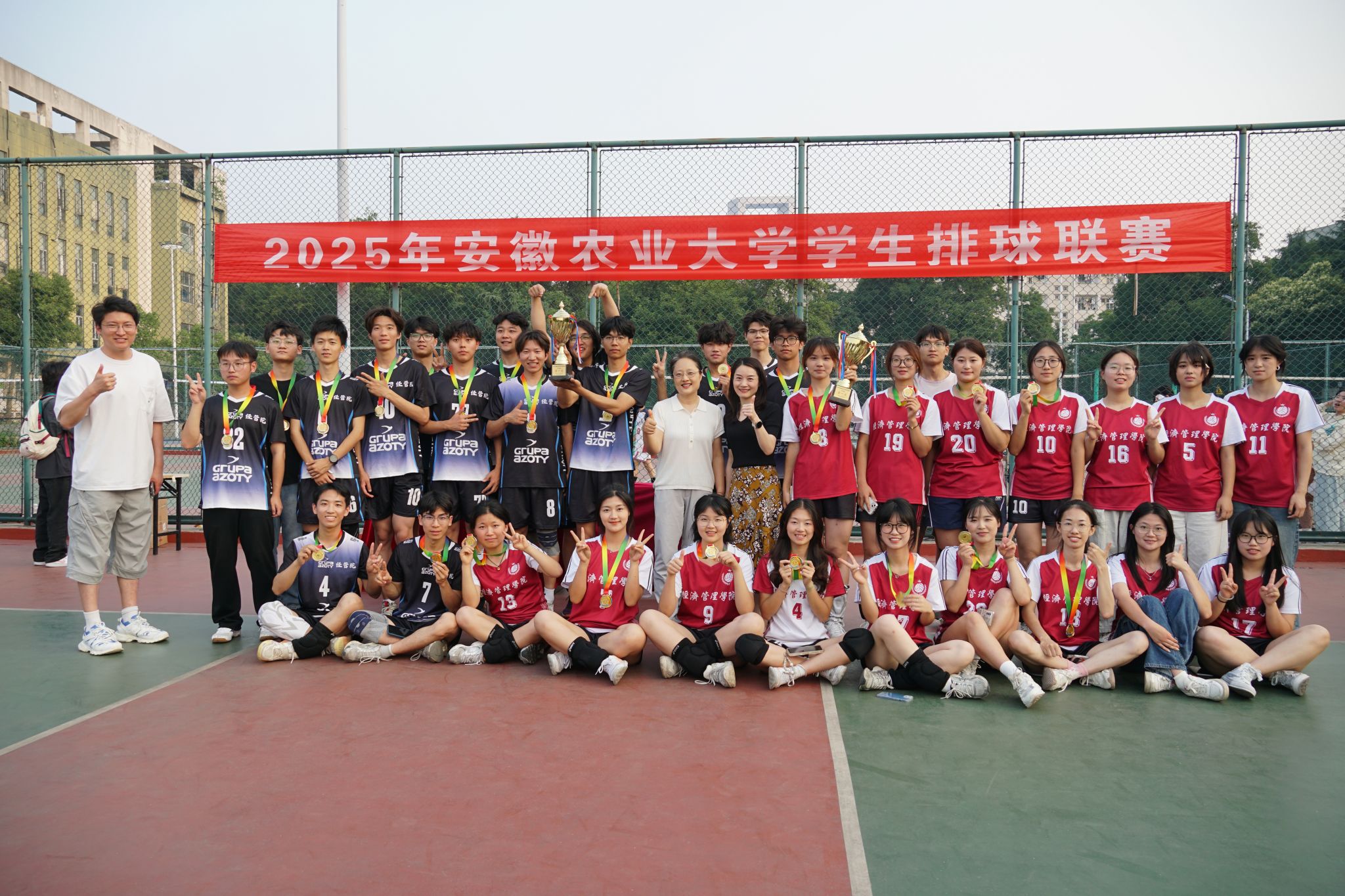 2025年安徽农业大学学生排球联赛,学院男女队双双夺冠,成为最大赢家!男子组、女子组决赛均以2:0战胜对手,首次实现排球联赛双冠王,书写学院新篇章。