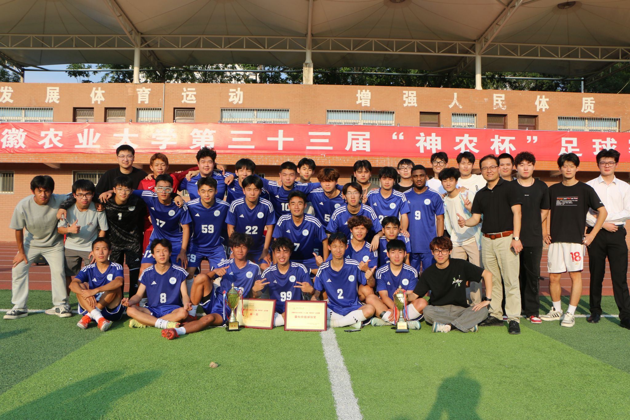 在第三十三届“神农杯”足球赛中,学院足球队从16支队伍、307名运动员的激烈竞争中脱颖而出,最终勇夺冠军。队员们凭借默契的配合和顽强的斗志,赢得了现场观众的阵阵喝彩,为学院争得了荣誉,学院朱杰同学荣获“最有价值球员(MVP)”称号。
