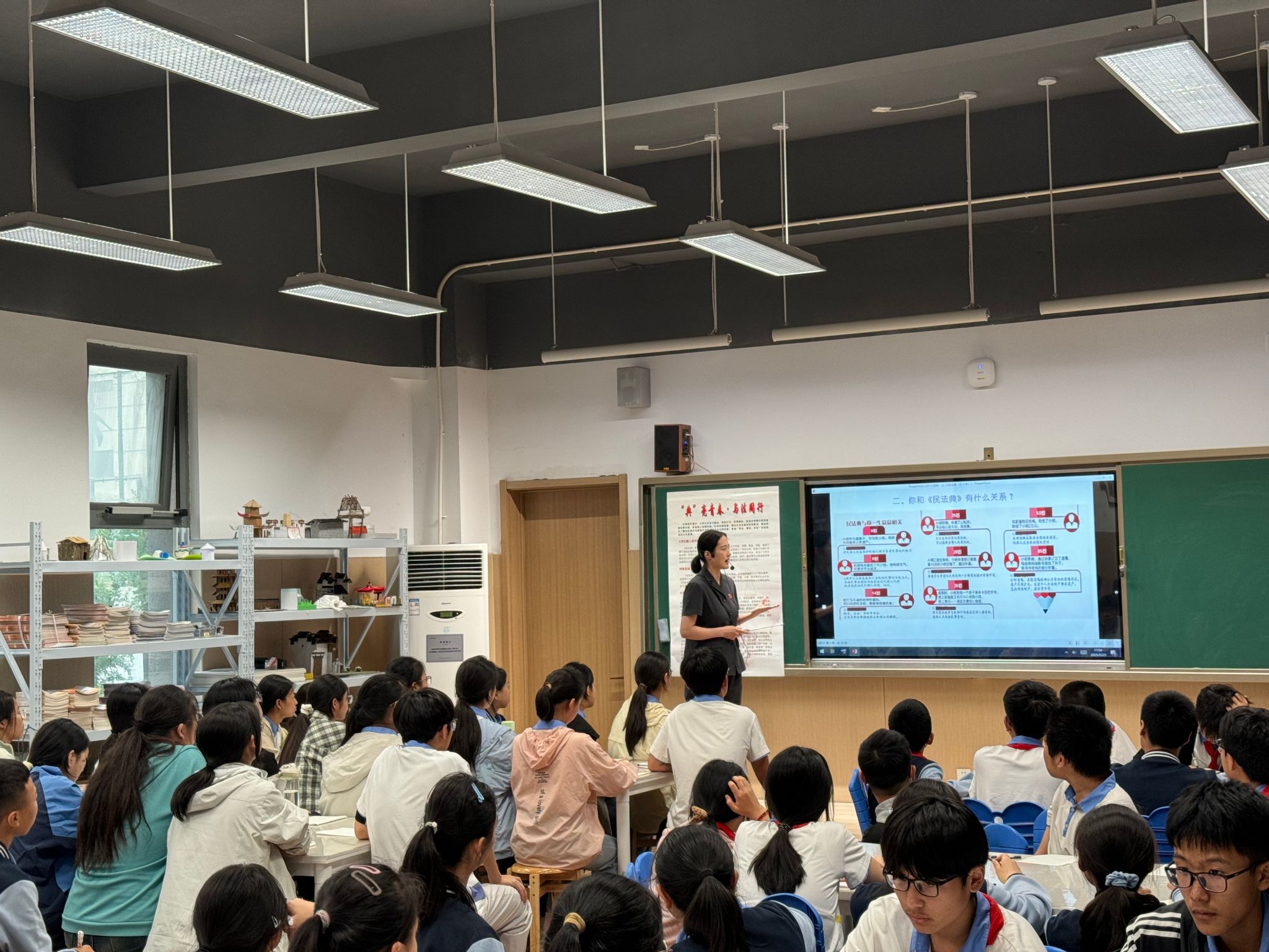 送法进校园。 5月23日下午,安徽农业大学联合合肥市蜀山区人民法院走进合肥市第五十中学东校振兴校区,开展“民法典护航青春”主题普法活动。活动中,法官以“民法典与青少年成长”为题,结合校园欺凌、网络打赏等热点案例,深入浅出地解读法律条文,引导学生树立权利意识和规则意识。我校学生志愿者组织开展了有奖问答等活动,并通过制作法治书签、普法漫画等文创产品,让中学生在动手实践中加深对法律知识的理解。