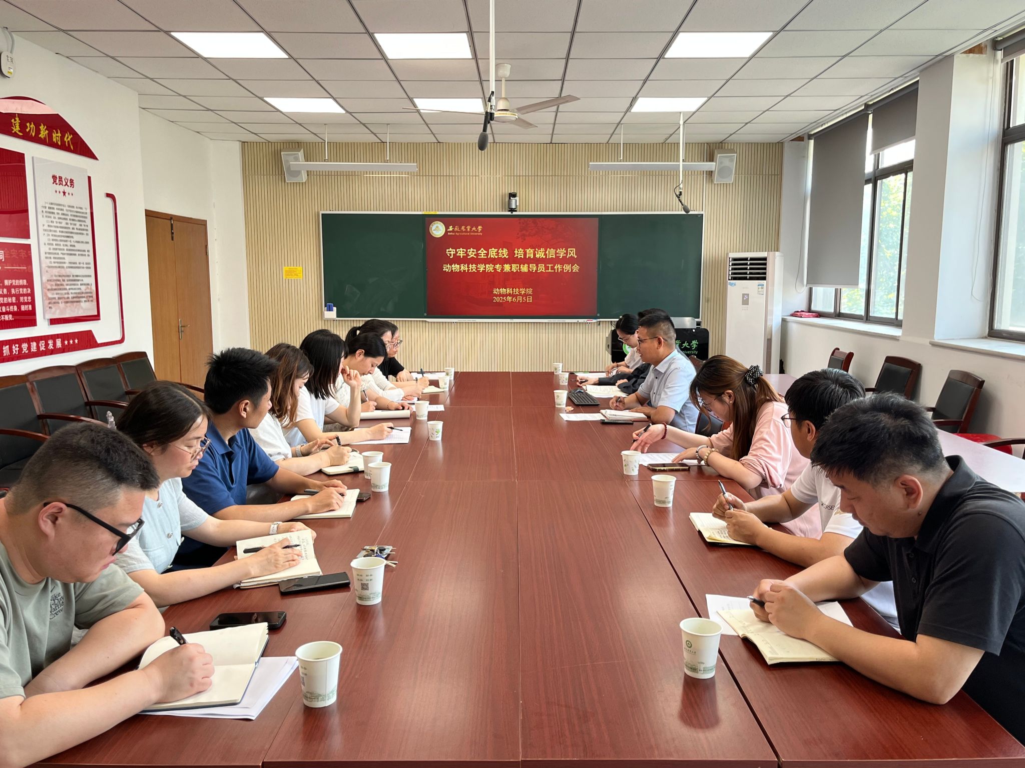 本网讯 6月5日,动物科技学院在动科楼306会议室召开“守牢安全底线 培育诚信学风”辅导员工作例会。全体专兼职辅导员参加本次会议。会议由学院党委副书记卢伟主持。