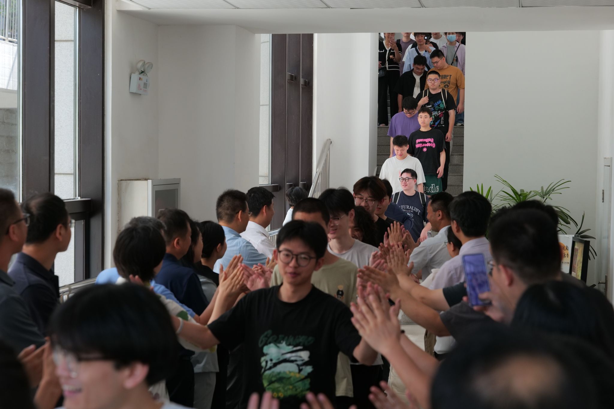 欢送会结束时,与会全体领导、教师、辅导员移步第一报告厅出口,站至两侧,每一位毕业生拾阶而下,师生互相击掌告别,传承美好“芯”愿,这一击,是安农力量的传递与延续,是天下安农人情谊的再起航,祝愿2025届毕业生前程似锦,未来可期。(文:邓菁菁 图:范雅辰 初审:邓菁菁 复审:陆强 终审:李南飞)