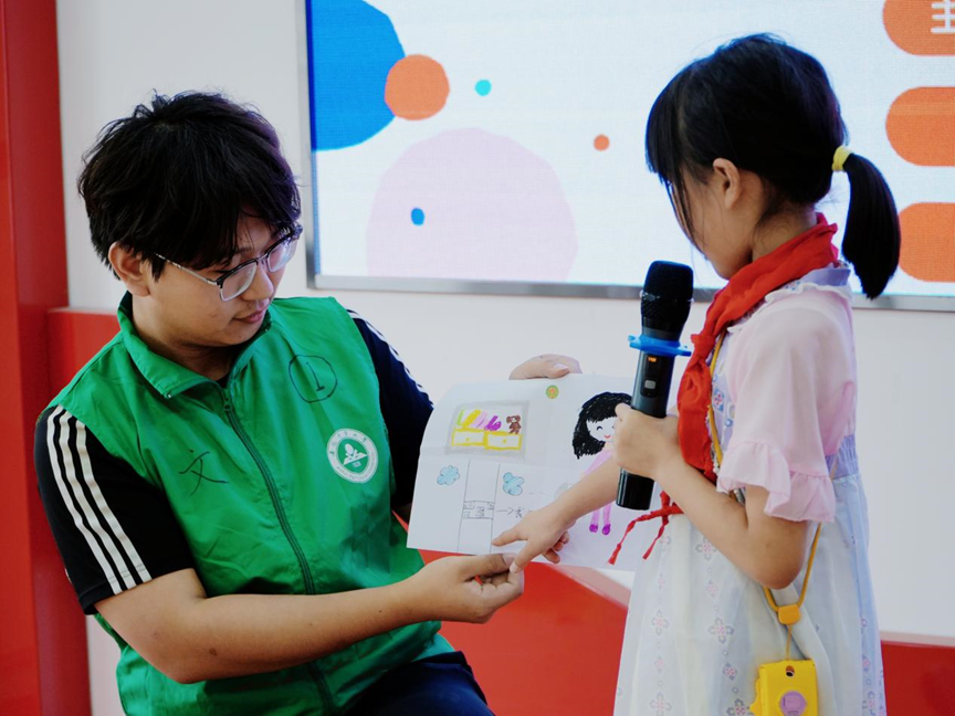 6月27日,活动以“心向朝阳•书启旅航”心理读书会的形式展开。活动从动画短片导入,引发孩子们对代际沟通的思考。随后,师生们带领孩子们共同阅读并探讨书籍《心语漂流瓶》,通过案例帮助孩子们理解不同情绪、学会交流沟通与接纳尊重。在深度讨论和“心灵便利贴”环节,孩子们学习了正确的家庭沟通技巧,并勇敢表达自己的想法。读书会成为孩子们倾诉心声、向家人表达情感的平台,为构建和谐家庭沟通提供了有力支持。