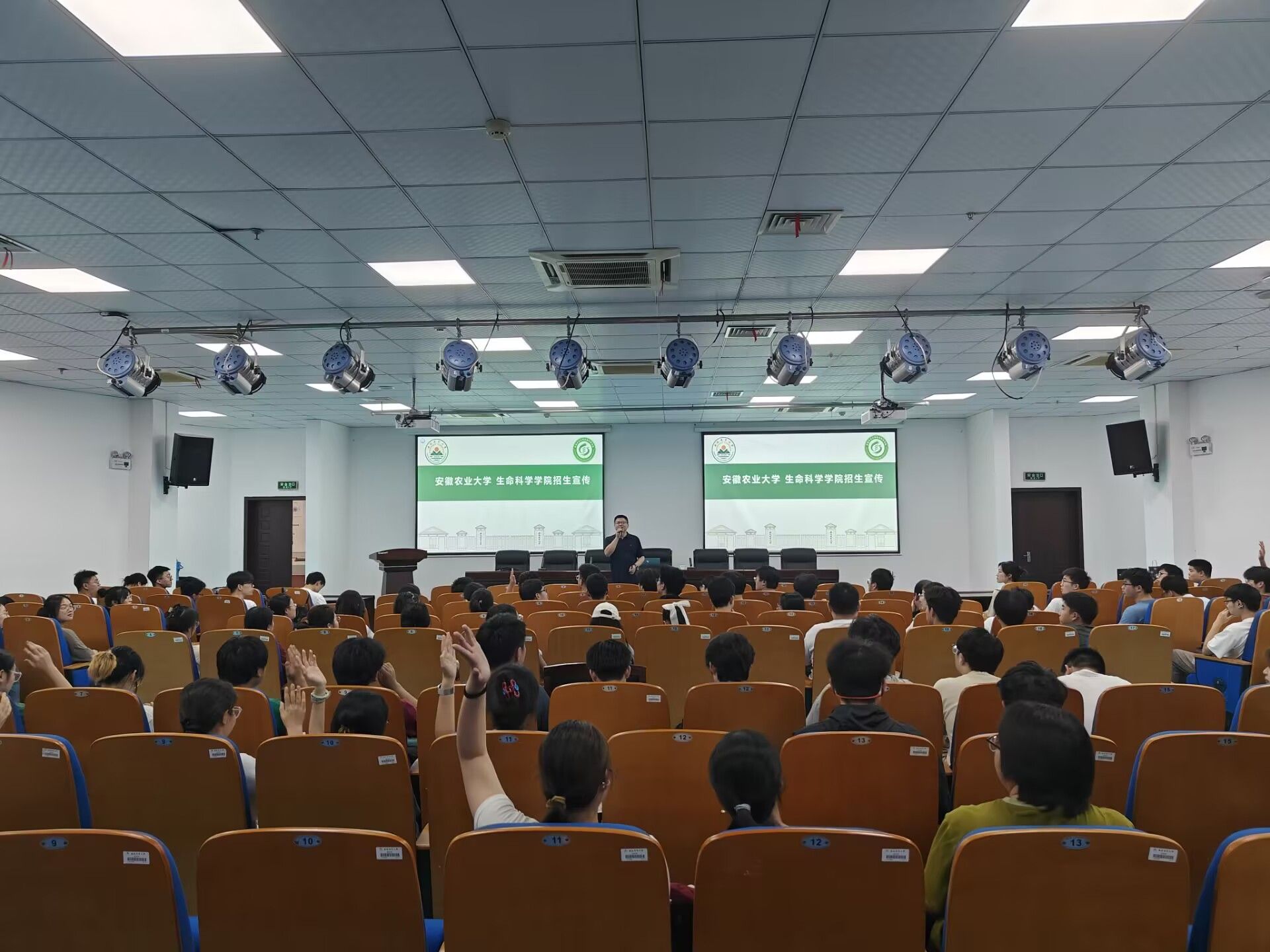 本网讯 7月1日,学院院长薛挺在生物科技楼B438教室,为2026届生物技术、生物科学、生物制药、应用生物科学专业150名学生带来了一场干货满满的考研讲座,围绕“安徽农业大学全日制硕士研究生招生政策详解”主题展开深入讲解,鼓励同学们积极报考本校硕士研究生 ,开启学术深造新旅程。