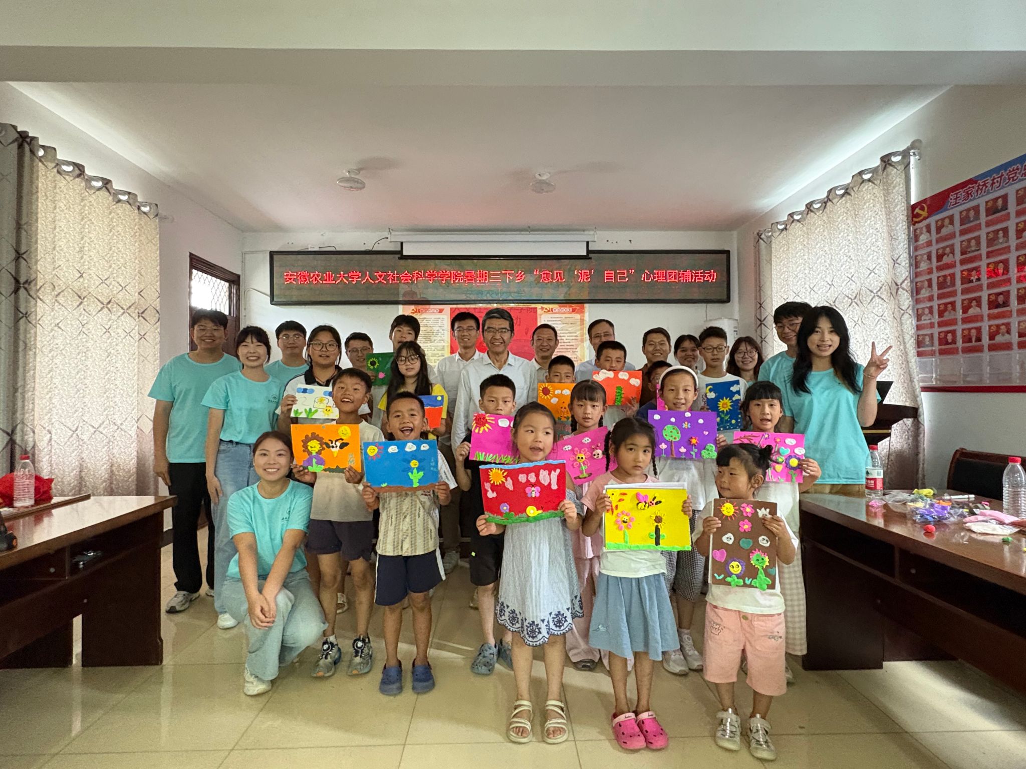 在三口镇汪家桥村委会活动室,董雨副书记详细了解学院暑期“三下乡”社会实践团队师生学习、工作和生活情况,现场指导实践团队开展乡村青少年心理健康团辅活动,与队员们进行深入交流,关心询问同学们的实践成效和感悟,对大家结合专业特色开展的案例分享、游戏体验、手工制作等活动给予充分肯定,并鼓励各位成员要继续发扬吃苦耐劳精神,用爱心和知识为乡村孩童拓展更广阔的视野,在服务基层中增长才干、锤炼品格,为乡村振兴贡献青春力量。他同时叮嘱团队成员要时刻绷紧安全这根弦,确保实践活动安全有序开展。