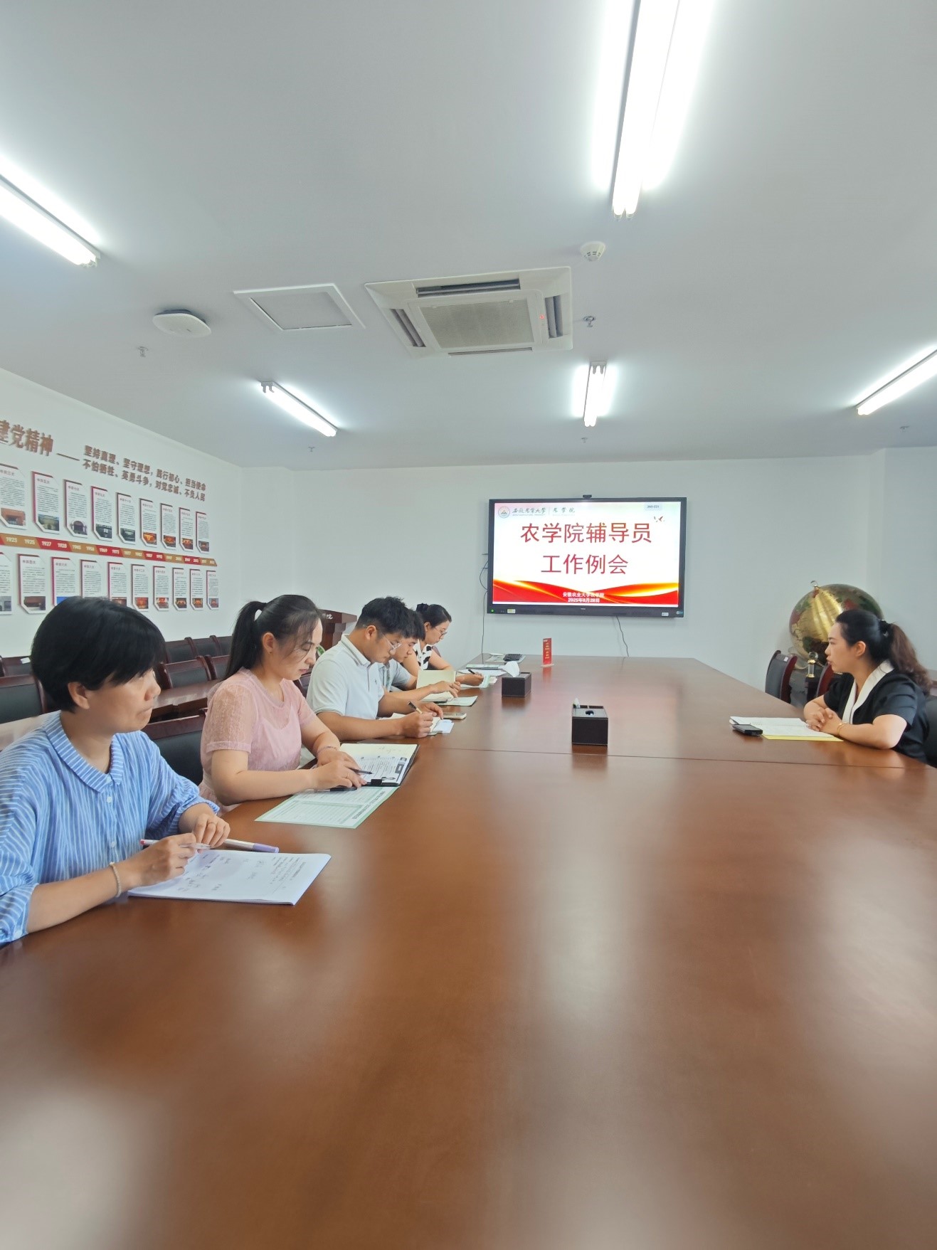 本网讯 为统筹推进新学期各项学生工作有序开展,明确工作方向、凝聚育人合力,8月28日上午,农学院在朝阳楼206会议室召开新学期专职辅导员工作例会。会议由学院党委副书记、纪委书记柳洁主持,全体专职辅导员参会。