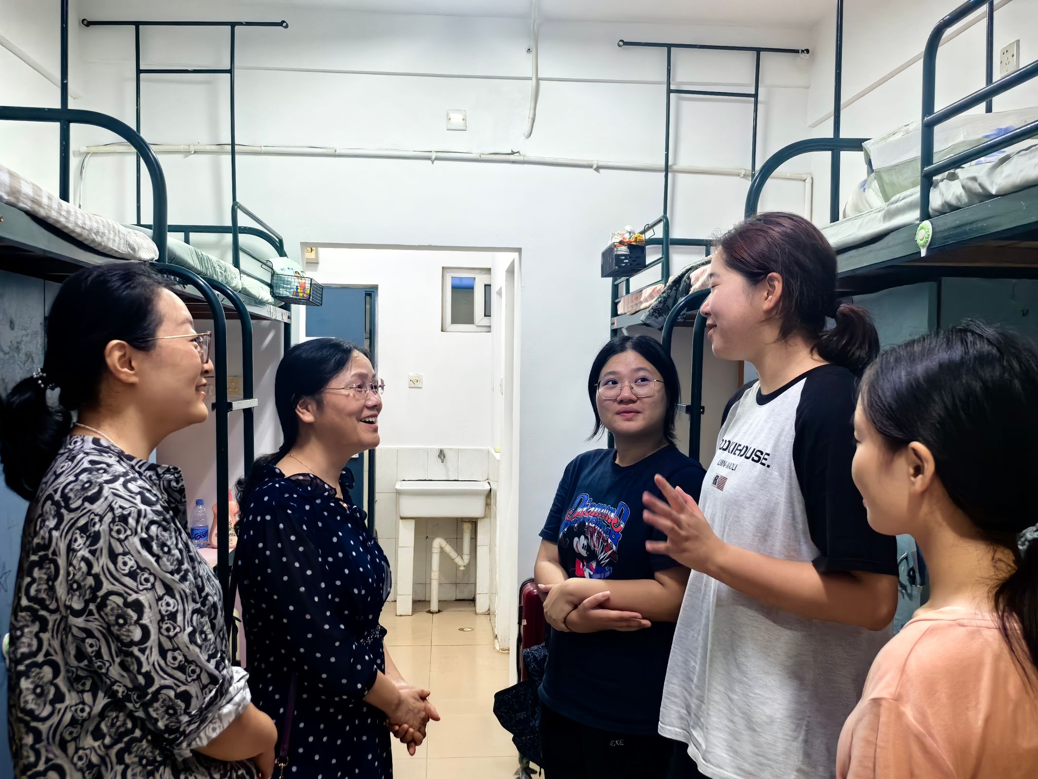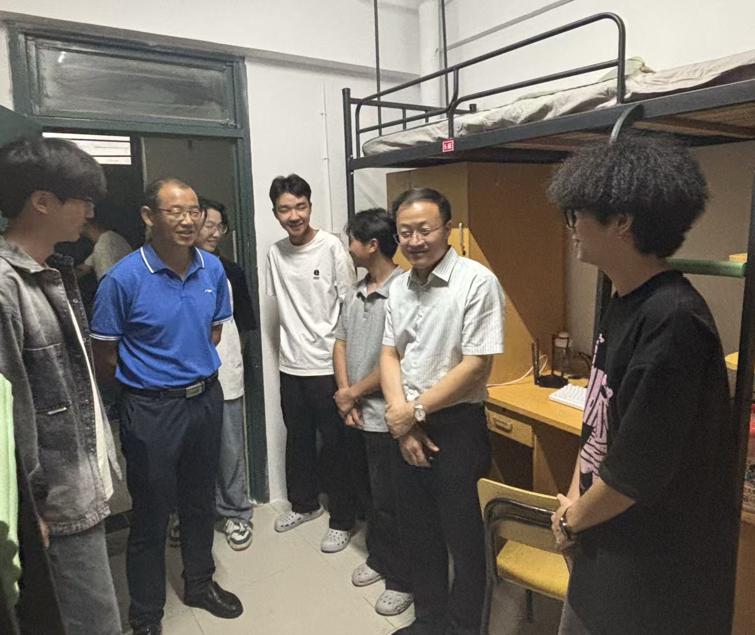 31日晚,学院党委副书记(主持工作)程玉峰、院长吴俊、党委副书记叶辉、副院长院凌云带领新生辅导员走访新生宿舍,了解学生需求。