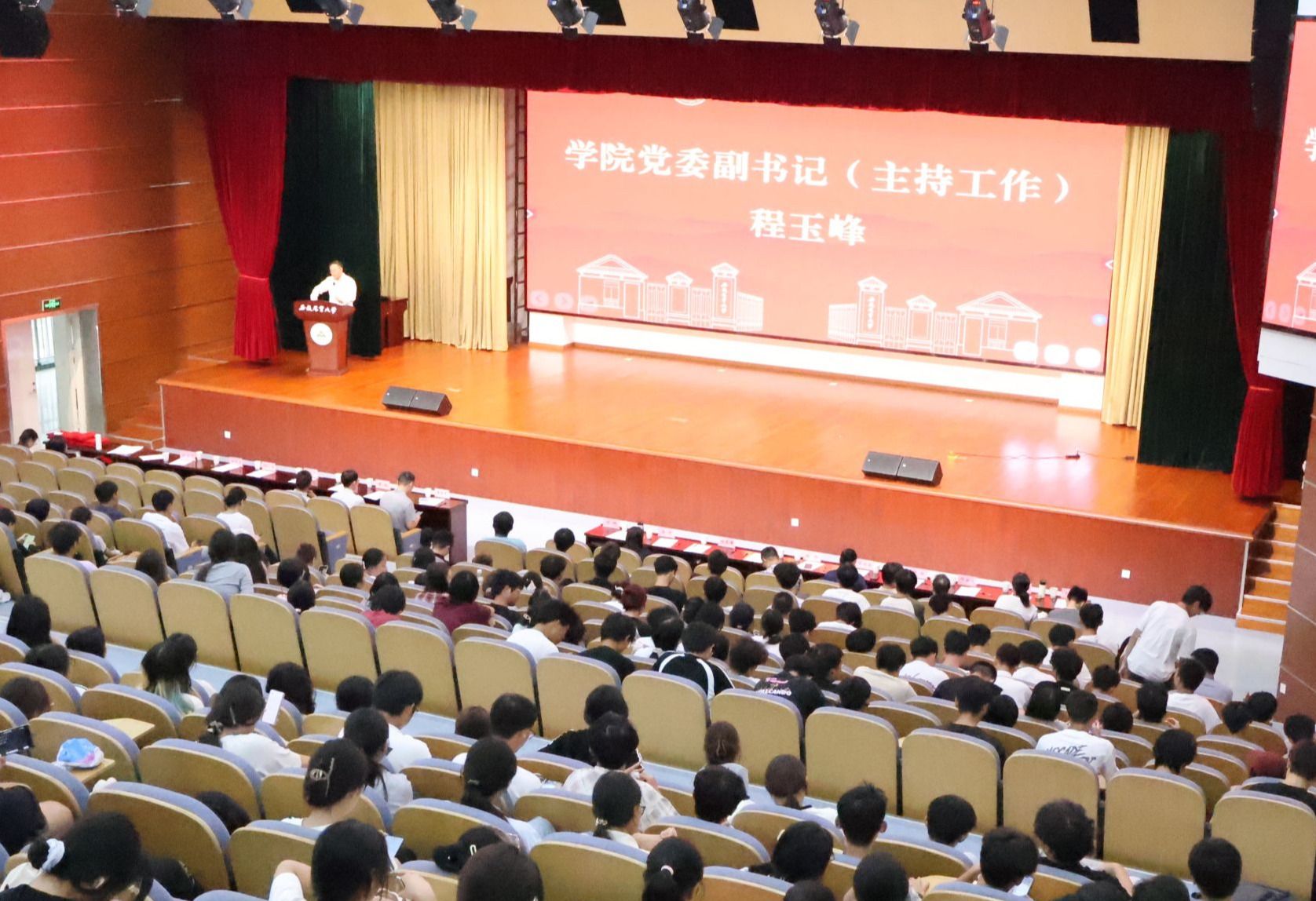 院党委副书记程玉峰向新入学的249名本科生、171名硕士研究生和13名博士研究生表示诚挚欢迎与祝贺。他结合自身的工作经历,与全体新生深入浅出探讨大学生应该“成为什么样的人以及如何为人为学为事”这一命题。他强调,大学生要有正确的价值追求和清晰的奋斗目标,要理直气壮谈信仰、谈追求,坚定不移听党话、跟党走,争做有理想、敢担当、能吃苦、肯奋斗的新时代好青年,将来为国家、社会和家庭贡献应有的价值;要学会理解、尊重和包容,为人为学为事要尊重规则、敬畏法律,争做一名有品格、有温度的大学生,将个人的价值放在集体中释放光芒,待人处事以诚动人、在互帮互助中快乐成长;要潜心为学、矢志奋斗,珍惜时光、脚踏实地,面对成长路上有风有雨的常态,练就风雨无阻的心态,打造风雨兼程的状态,在刻苦学习、砥砺奋斗中成就做好的自己。