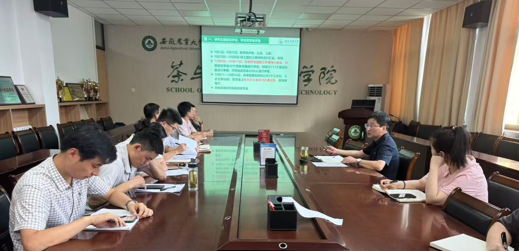 本网讯 10月9日,茶业学院召开专兼职辅导员工作会议,旨在进一步加强辅导员队伍管理,明确工作目标规划,推动学生管理工作稳步前进。会议由学院党委副书记沈周高主持,全体专兼职辅导员参加会议。