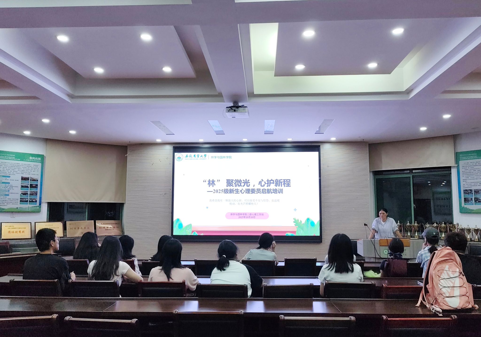 10月10日晚,学院在林学楼二楼报告厅举办“‘林’聚微光,心护新程”2025级新生心理委员专题培训,为新生心理委员履职赋能。负责老师结合工作实际,明确了心理委员核心职责,讲解了心理委员角色定位与工作方法,传授了有效倾听、共情沟通等实用技巧,规范了心理异常情况的初步识别、分级上报路径及保密原则。培训强化了心理委员的责任意识与专业素养,为构建常态化和规范化的心理健康工作体系筑牢了基础防线。