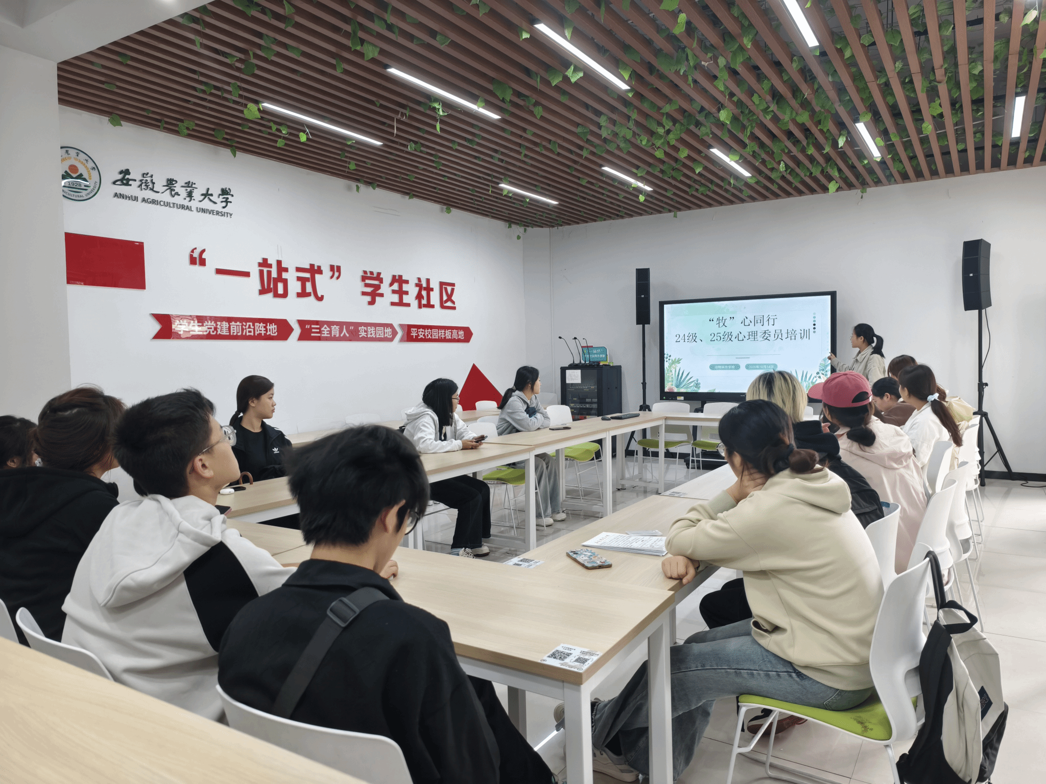 本网讯 10月14日,动物科技学院在学校一站式学生社区开展“牧心同行”班级心理委员培训。2023级和2024级班级心理委员参加本次培训。培训由学院心理健康站负责老师主持。