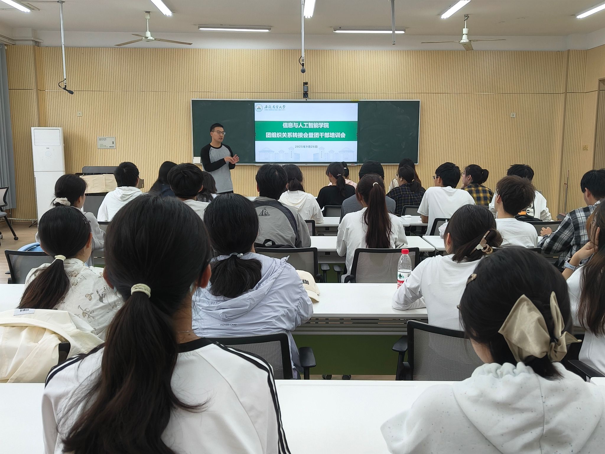 本网讯 9月26日,信息与人工智能学院在信智楼204召开新学期团干部培训暨新生团组织关系转接培训会。本次培训旨在加强学院基层团组织建设,提升团干部的综合能力,同时规范2025级新生团组织关系的接收与管理工作。学院团委老师、2025级团支部书记参加培训会。
