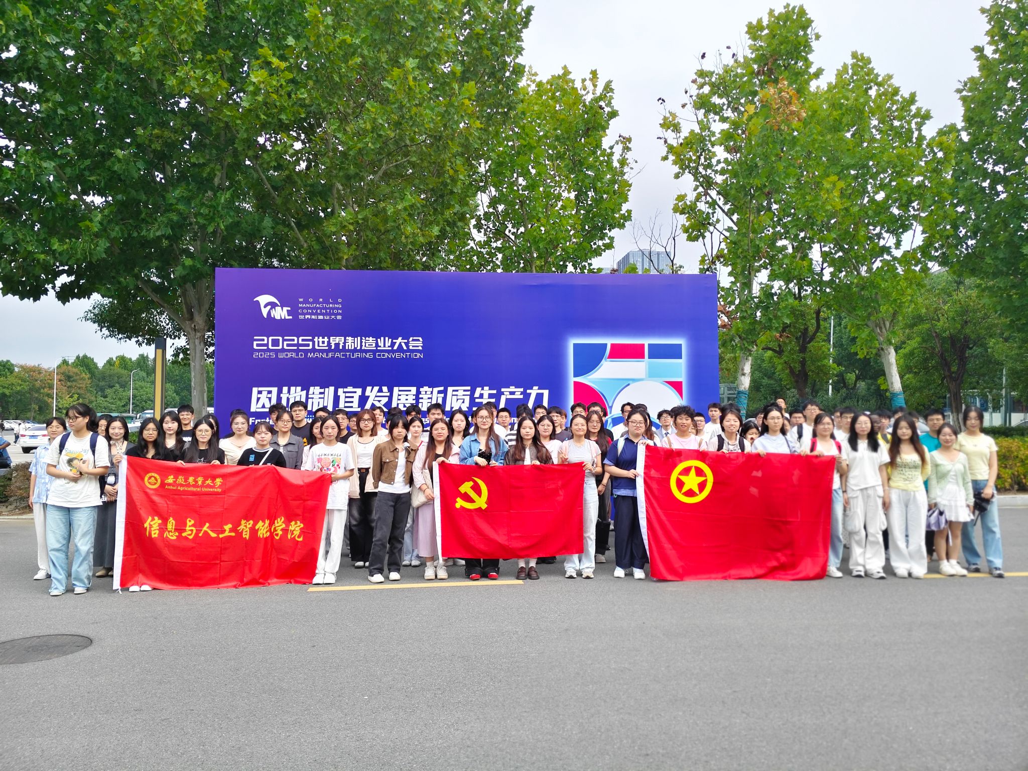 本网讯 9月22日下午,信息与人工智能学院组织教师代表、25级研究生新生代表、学院学生会和研究生会成员前往合肥滨湖会展中心,参观世界制造业大会。