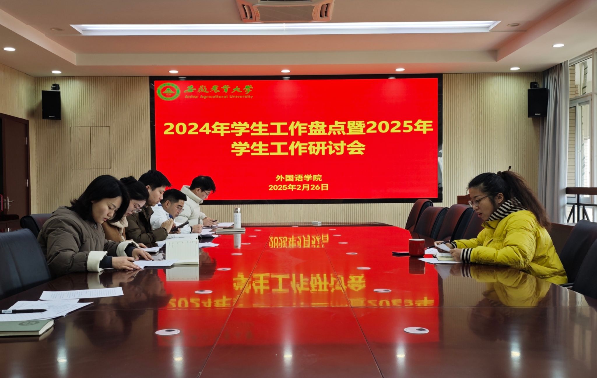 本网讯 启航新征程,匠心绘前景。为汲取经验,精心布局新一年学生工作,推动学生工作高质量发展,2025226日上午,外国语学院在外语楼506会议室召开2025年学生工作研讨会,认真盘点2024年工作,仔细谋划2025年工作。会议由学院党委副书记、纪委书记姬惠惠主持,全体辅导员参加会议。