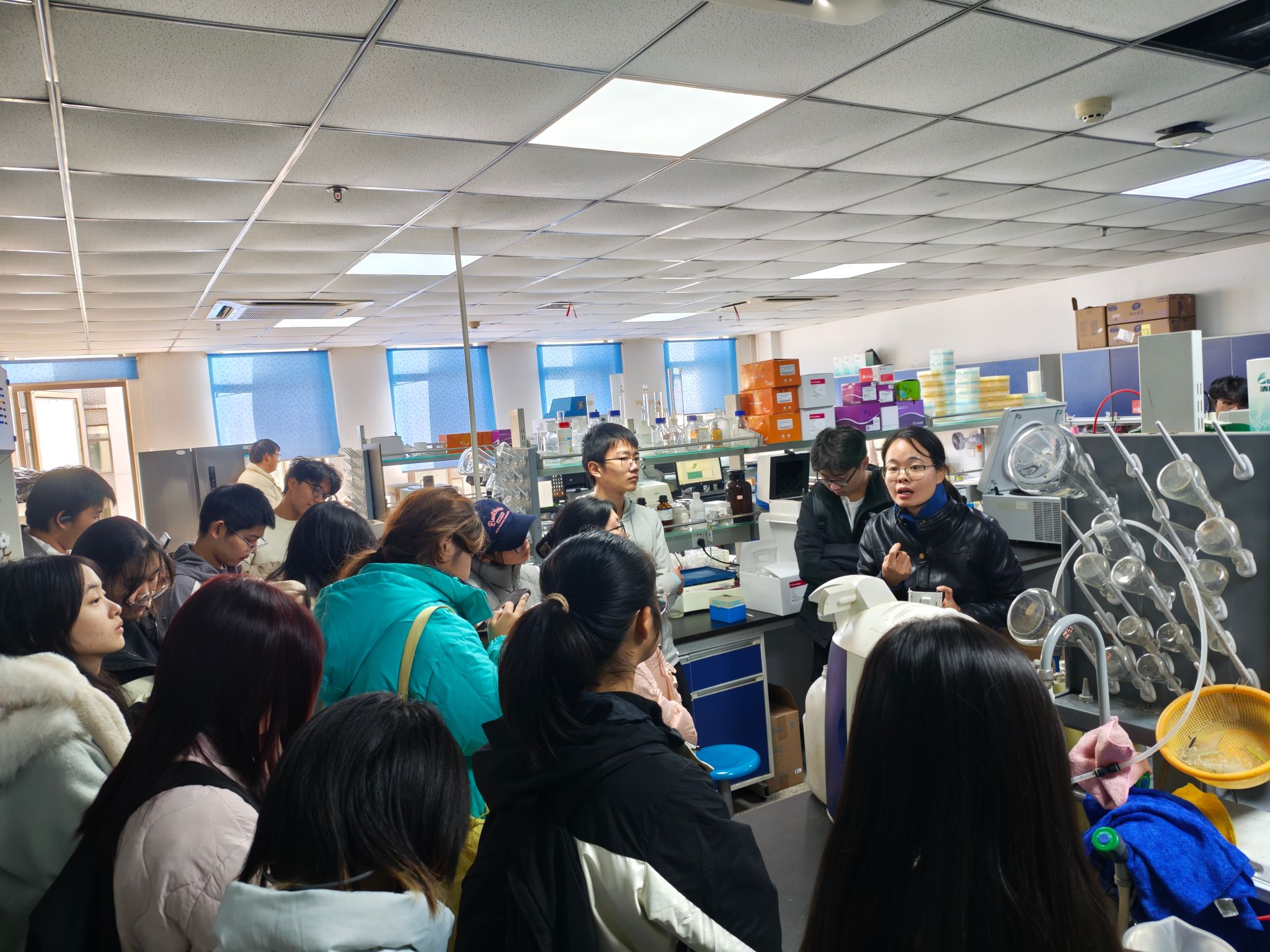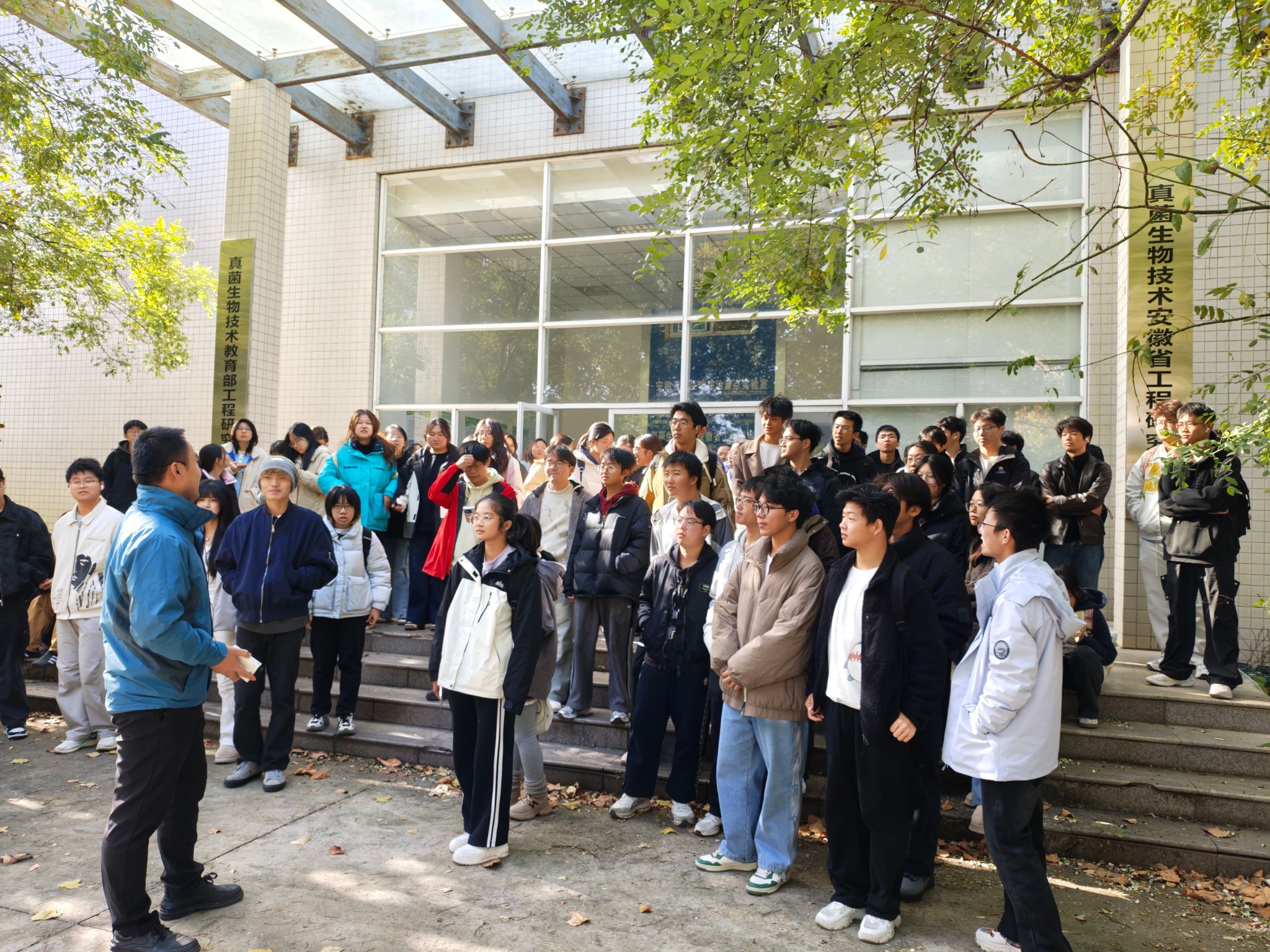在安徽省重大林业有害生物绿色防控重点实验室,王玉龙老师、吴敏老师及博士研究生赵妍洁共同为同学们进行讲解,同学们深入了解了真菌培养与发酵、产品分析与检验等关键科研环节,结合现场演示,让新生对林业科研实践有了更加直观和系统的认识。