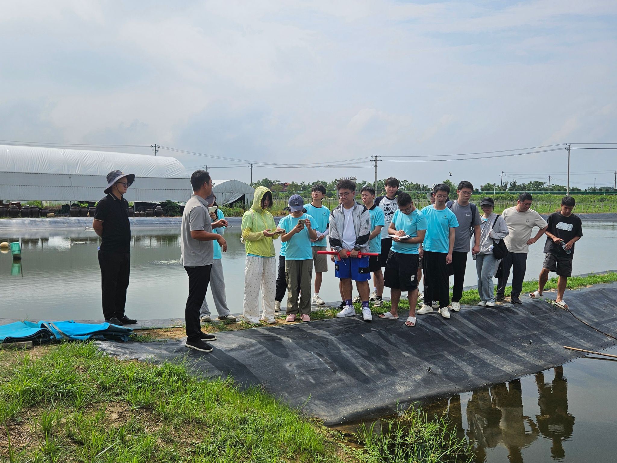 本网讯 7月8日至11日,2023级水产养殖学专业学子奔赴安徽宣城,开展暑期“三下乡”社会实践活动。同学们深入水产养殖一线,探访科技小院、龙头企业、科研基地及创新养殖场,系统学习宣城特色水产养殖模式与前沿技术,在实践中感悟科技兴农力量,助力乡村振兴。指导老师金生振、丁淑荃、李西雷等全程参加了实践活动。