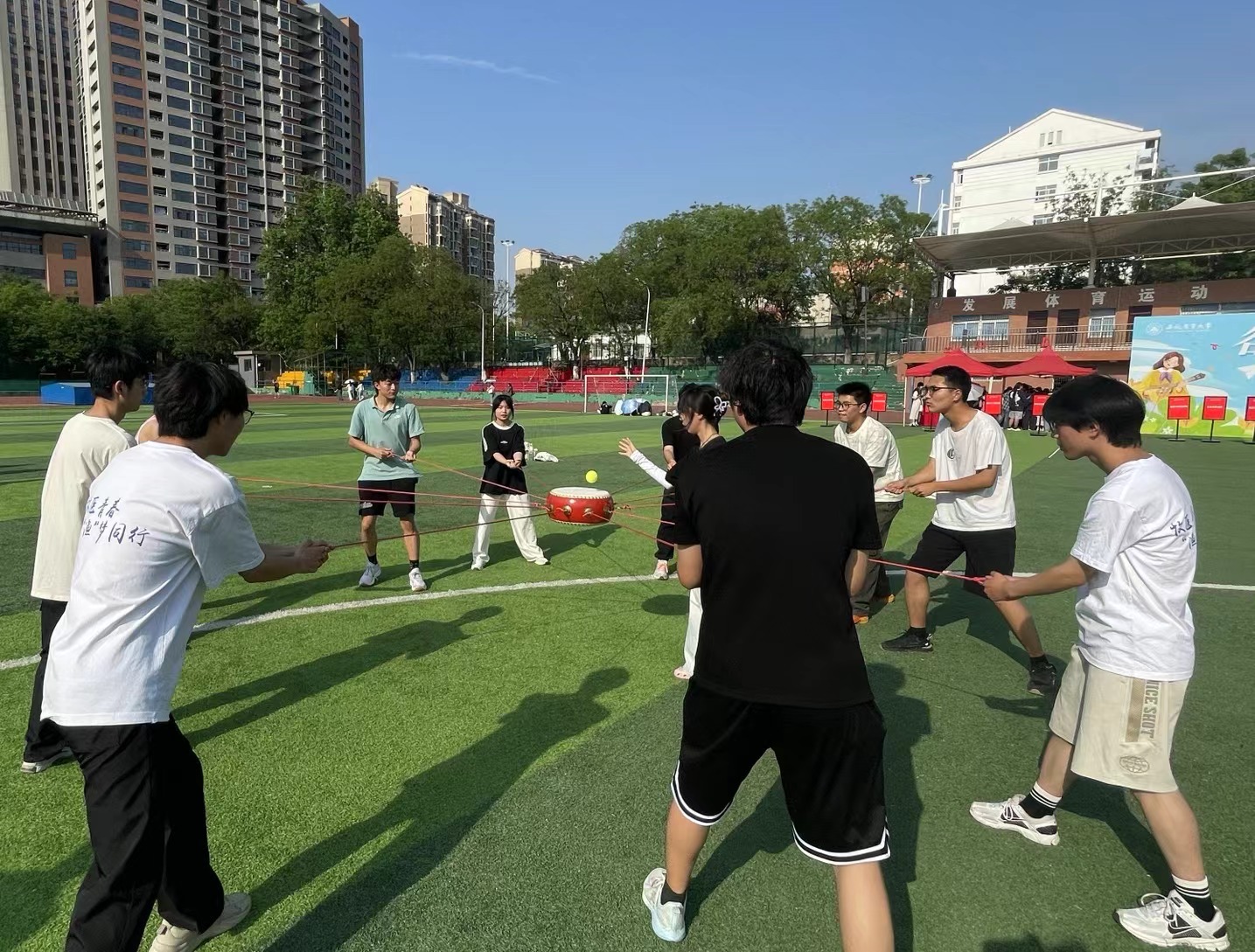 本次农趣运动会集体项目共包含“颗粒归仓、趣味投壶、纸网捞鱼、同心击鼓”。学院学子积极响应,踊跃报名参加,比赛期间,运动员们秉持着“友谊第一,比赛第二”的良好道德风尚,充分展示着学院学子,敢闯敢拼、团结协作的精神风貌。在璀璨的谷雨节,真正做到了成绩和风格同在,友谊与欢乐并存。