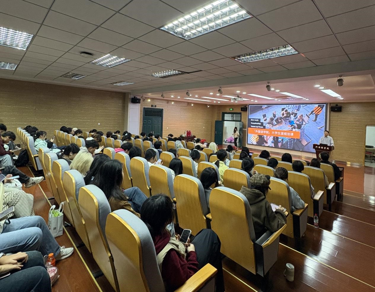 讲座中,主讲老师结合外语专业特点,系统讲解大学四年学习重点。指导同学们大一要夯实语言基础,做好听说读写能力训练;大二聚焦专业核心课程,尝试参与学术活动;大三强化实践技能,拓展跨文化交际能力;大四精准对接升学或就业需求。