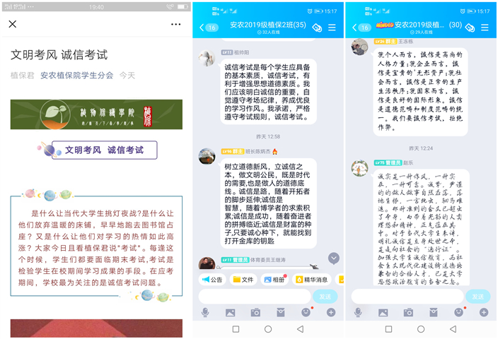 学院还通过诚信话题的集体讨论、发布微信推文等形式,大力营造积极向上的考试氛围。